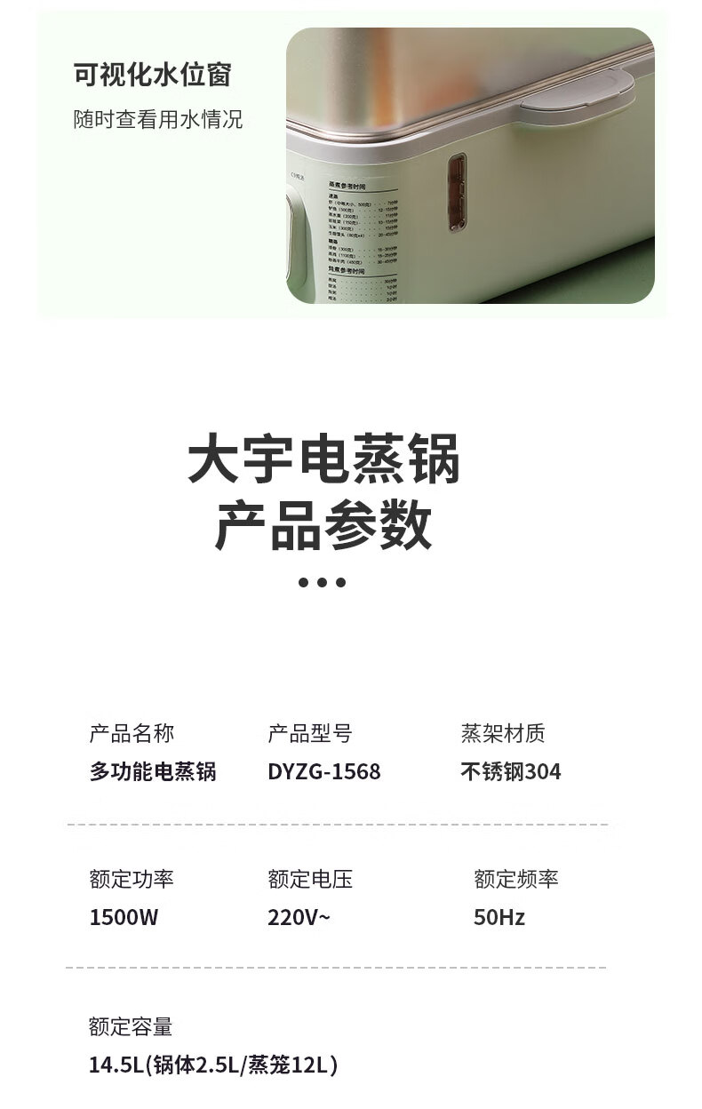 大宇多功能电蒸锅DYZG-1568【LXCTCJ10.0】