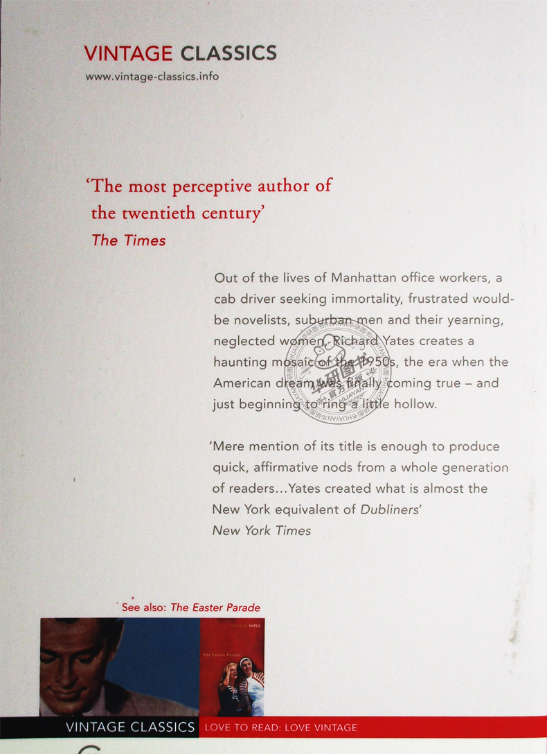 First published in 1962, a year after Revolutionary Road, this sublime collection of stories seems even more powerful today. Out of the lives of Manhattan office workers, a cab driver seeking immortality, frustrated would-be novelists, suburban men and their yearning, neglected women, Richard Yates creates a haunting mosaic of the 1950s, the era when the American dream was finally coming true - and just beginning to ring a little hollow.