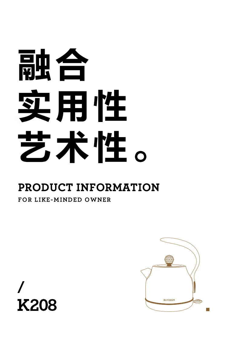 北鼎 Buydeem K208炫彩全304不锈钢电水壶 香槟黄
