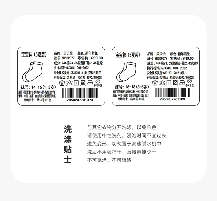 贝贝怡宝宝袜(5双装)ZB5DP077