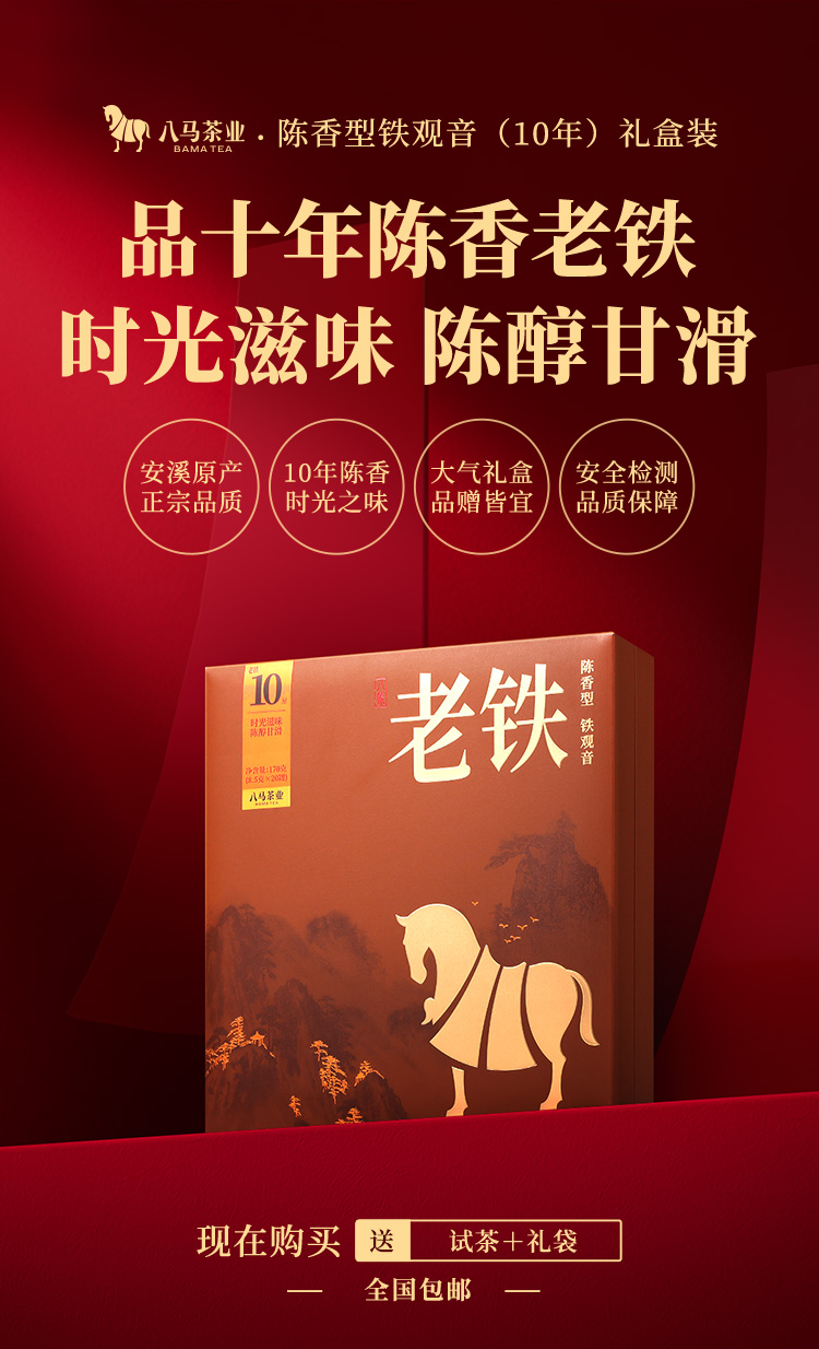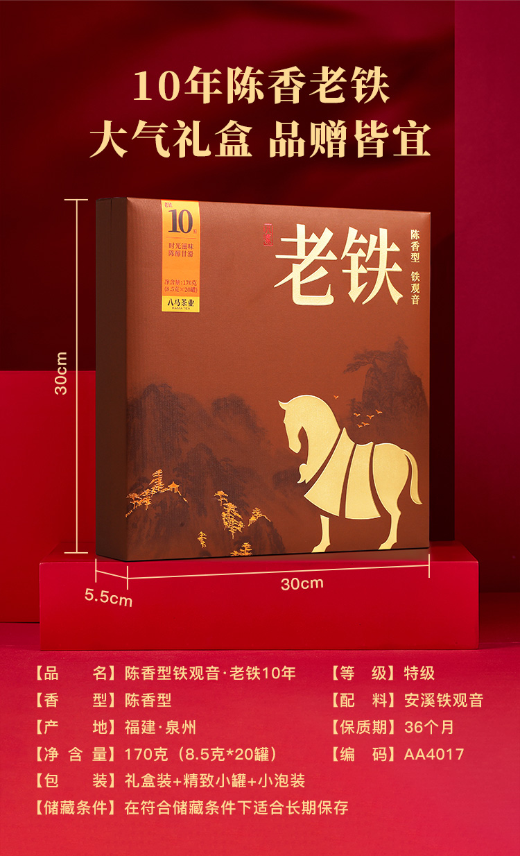 八马茶业 | 乌龙茶陈香型铁观音·老铁10年礼盒装送人170g