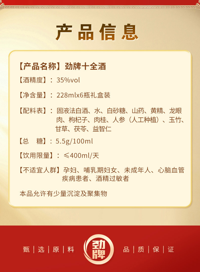 劲牌 十全酒 35度 228ml(礼盒款) 露酒 宴饮佳品 聚会必备 送礼好酒 自饮小酌 聚餐
