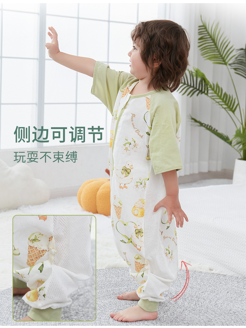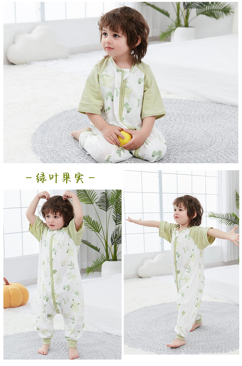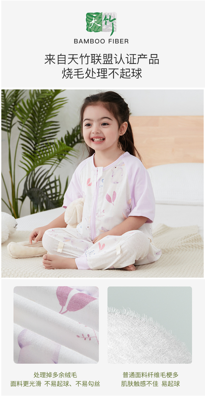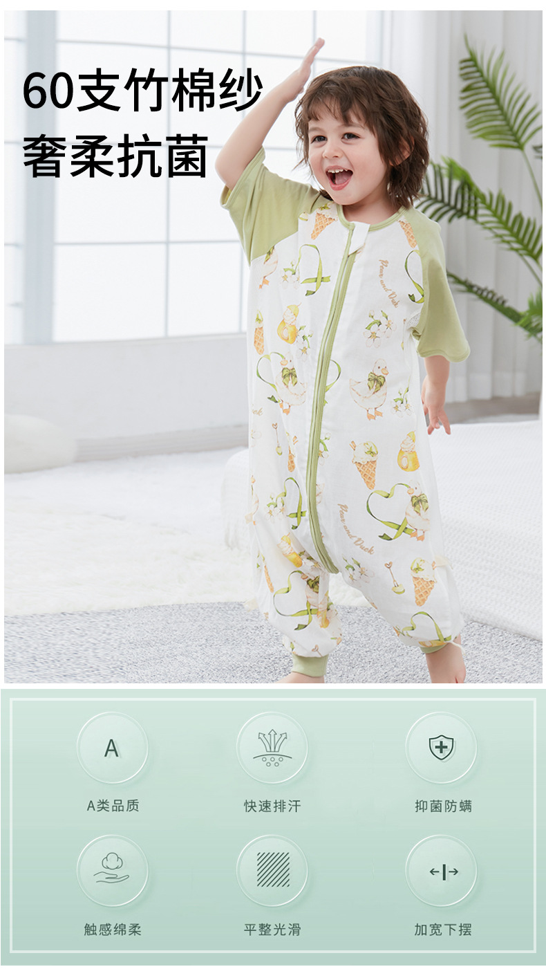 【可机洗 越洗越绵软】夏季竹棉婴幼儿分腿睡袋纱布儿童短袖抑制菌竹纤维宝宝睡衣A类薄款