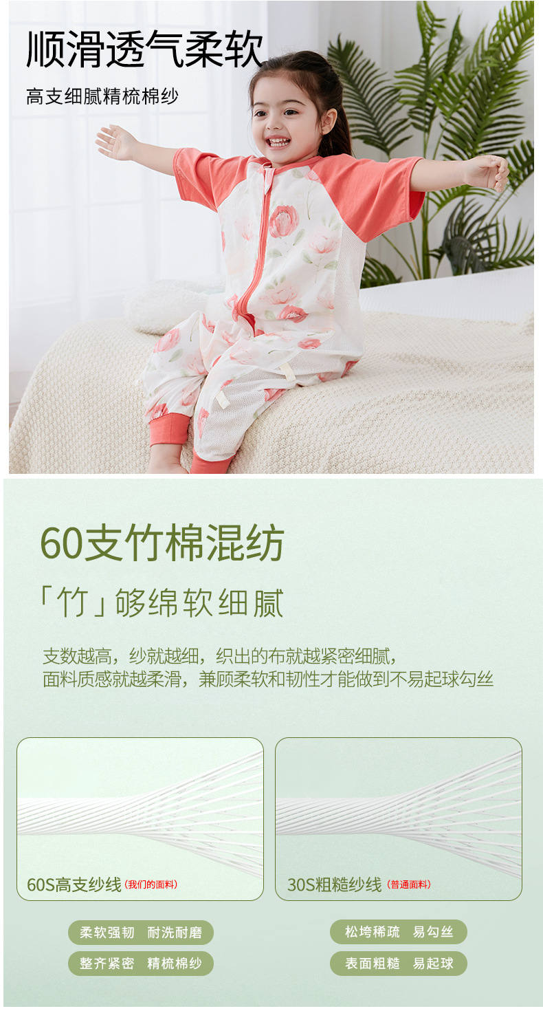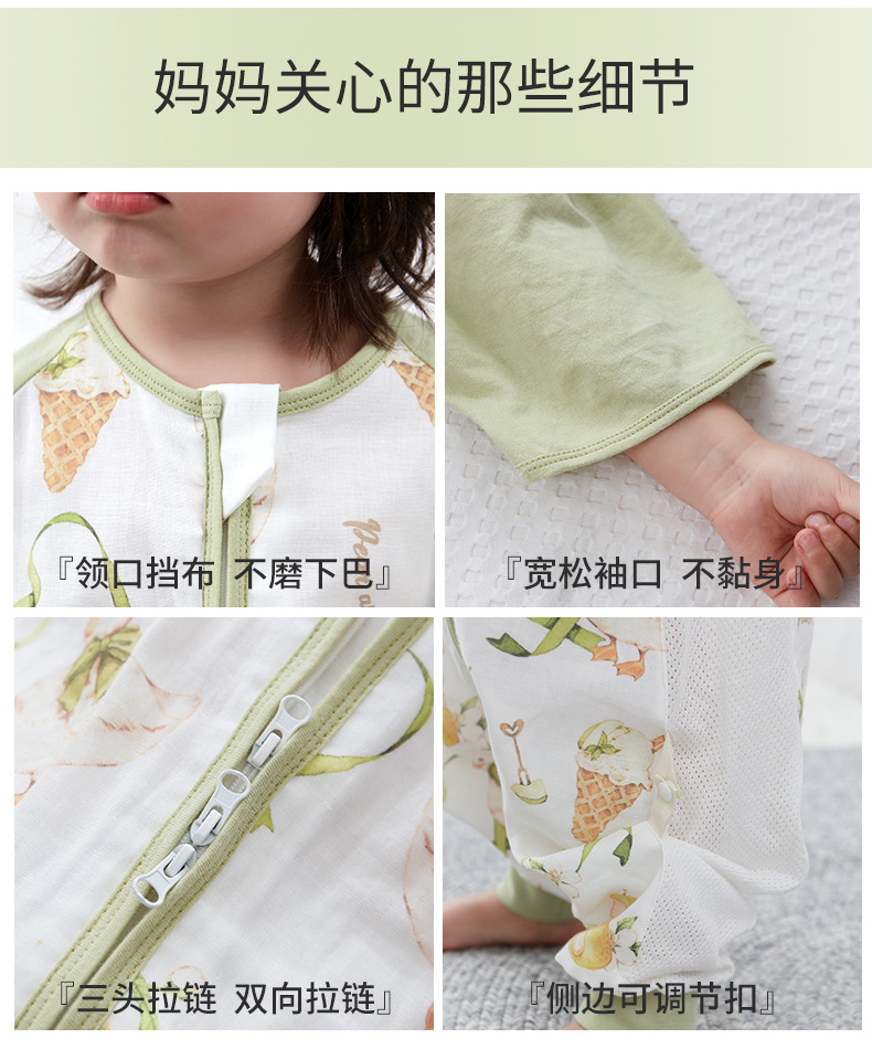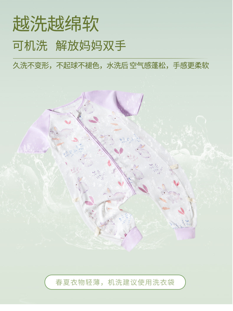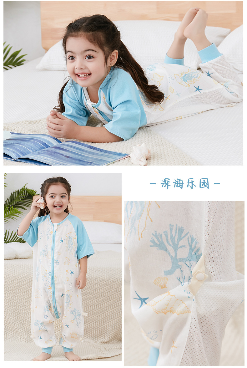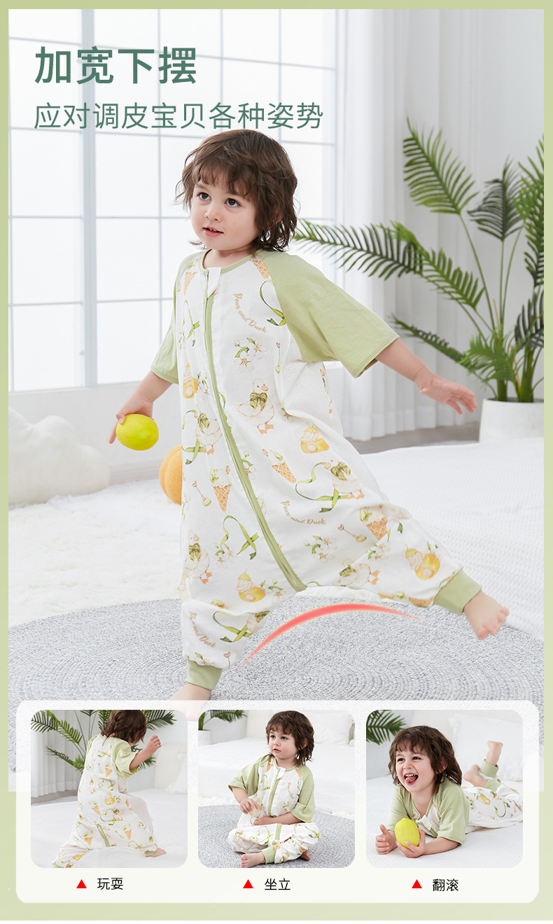 【可机洗 越洗越绵软】夏季竹棉婴幼儿分腿睡袋纱布儿童短袖抑制菌竹纤维宝宝睡衣A类薄款