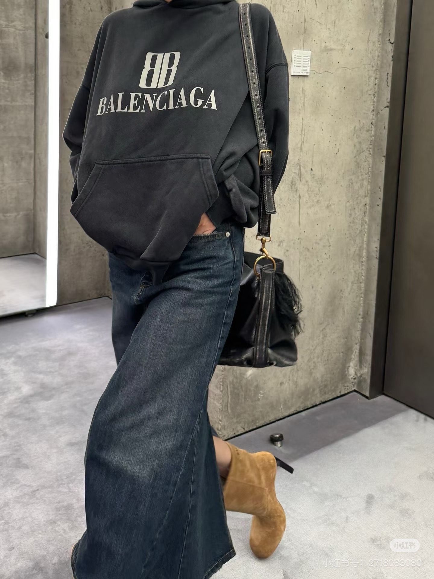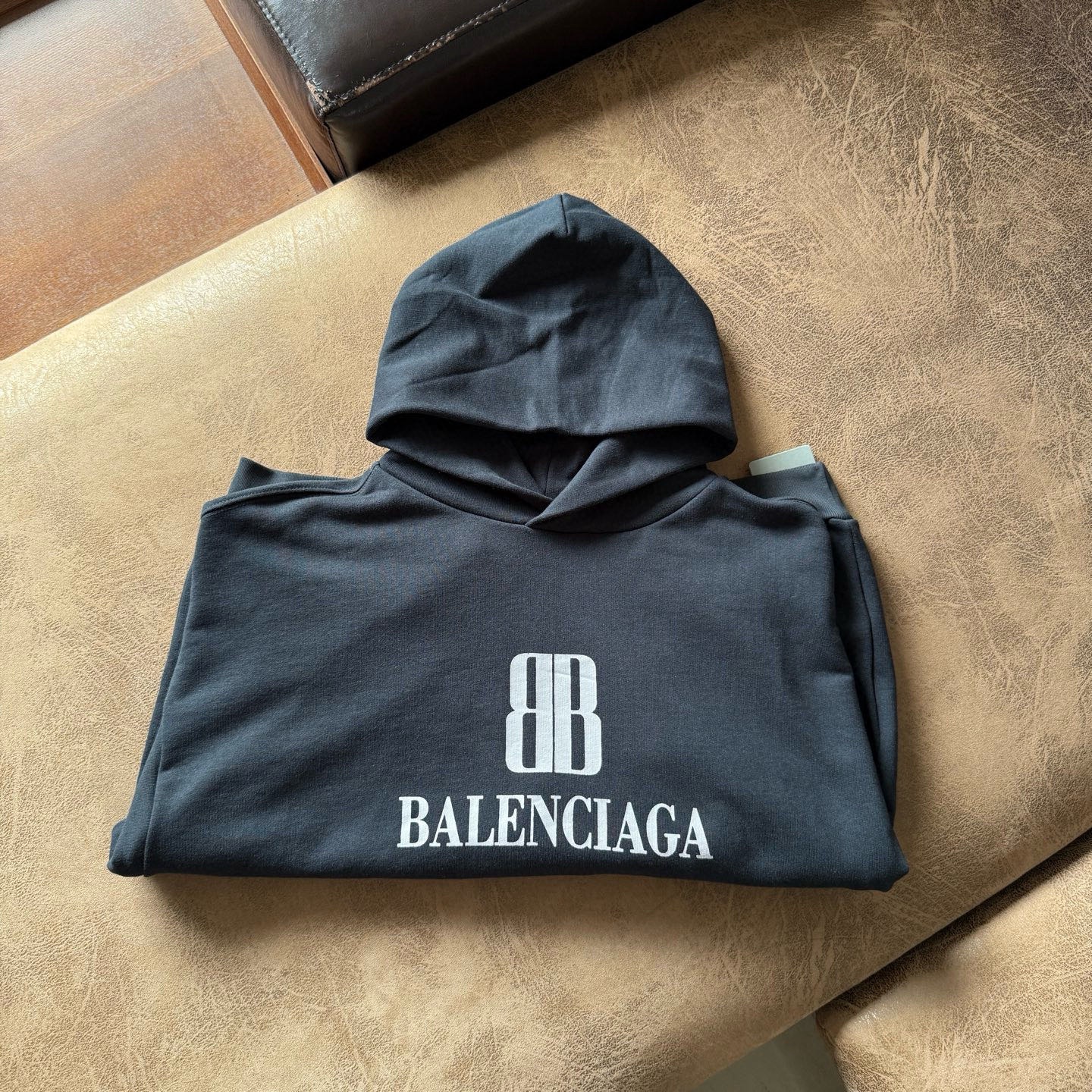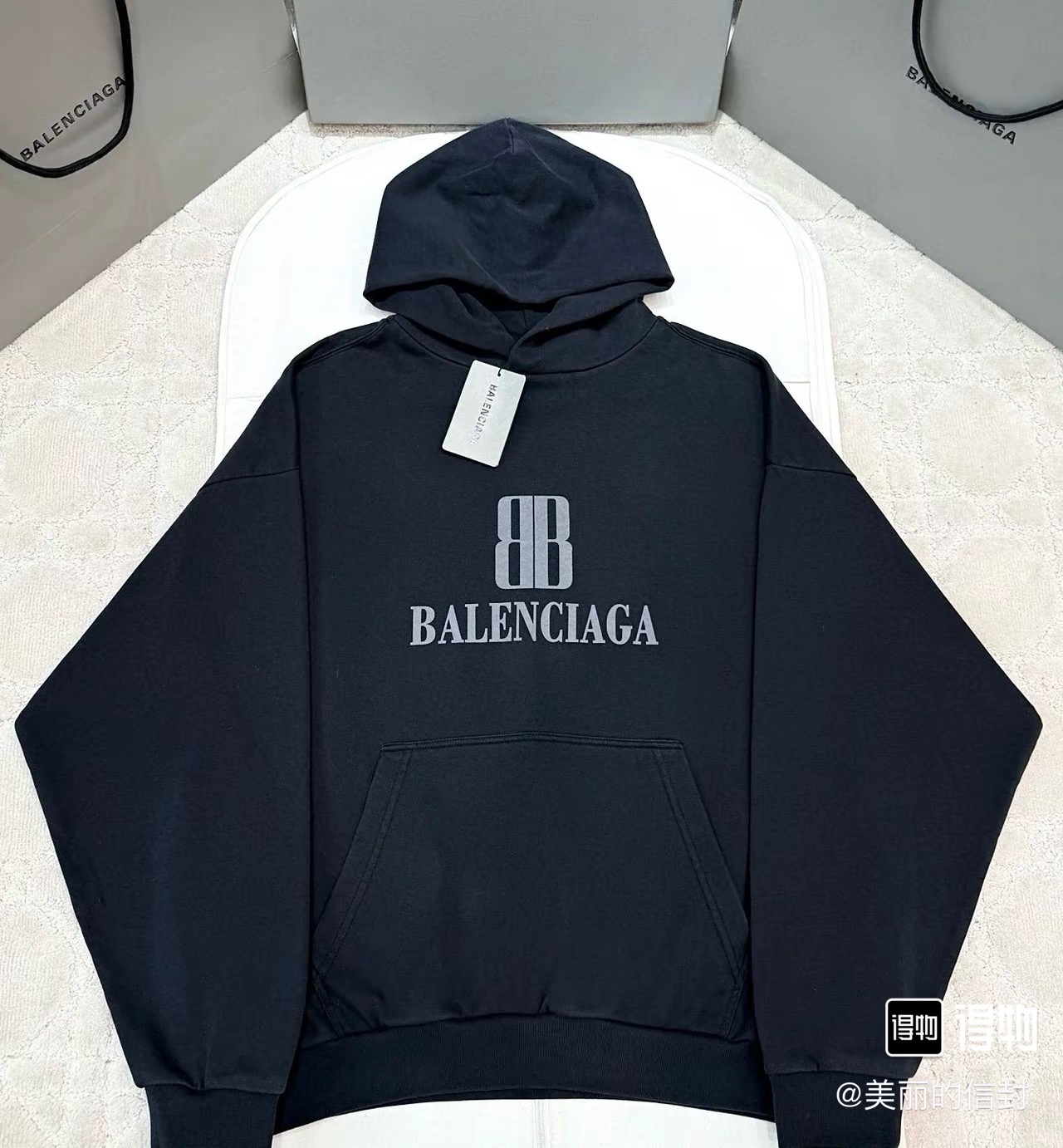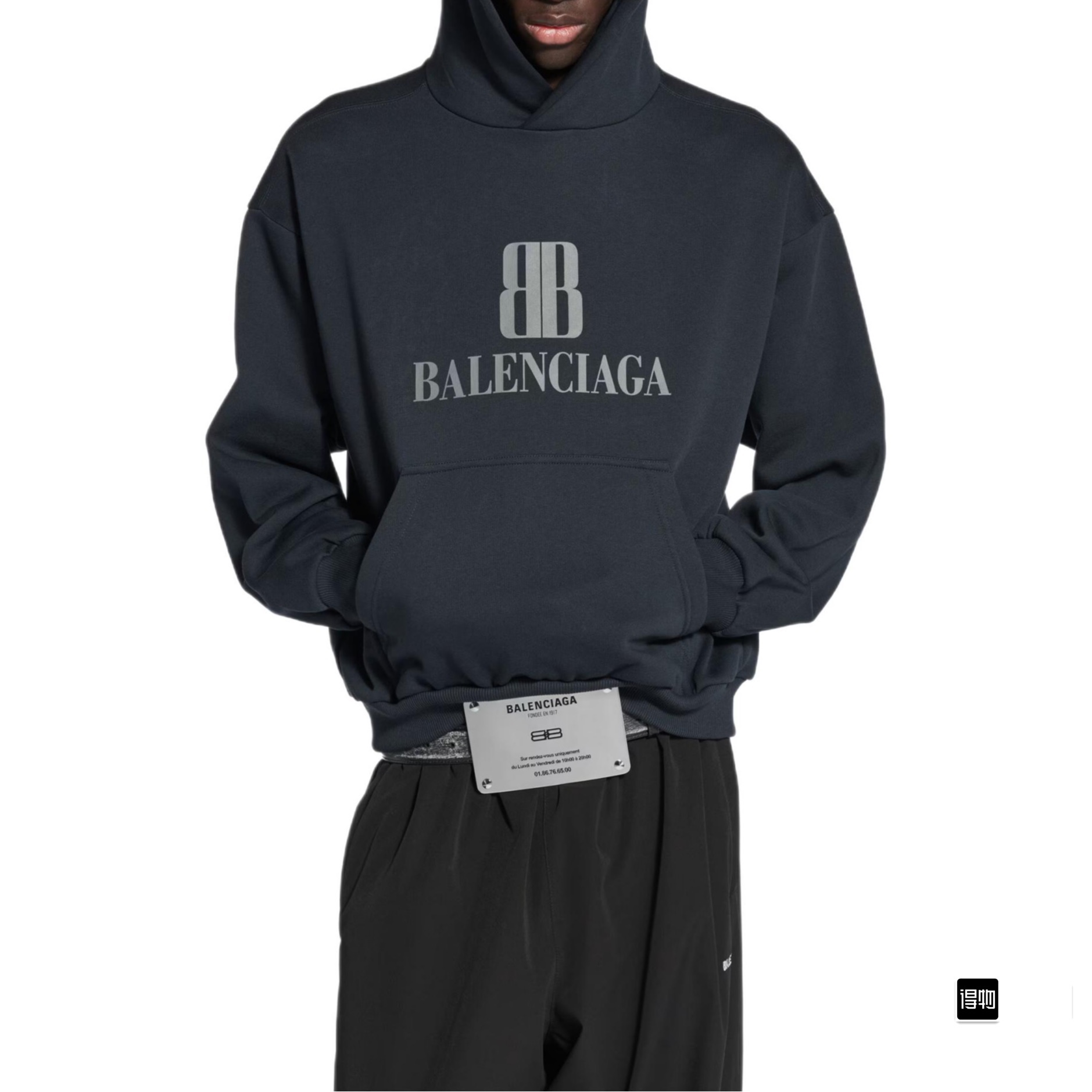 棉质落肩Logo徽标双B标语连帽卫衣男女同款!双B卫衣太有范儿了!日常出街超赞 连帽设计很休闲,宽松版型显瘦又舒适。不管是日常出街还是约会,都超有氛围感~?双B标语连帽卫衣,黑色+白色“BB”字母,品牌感满满!高品质棉料,柔软舒适,宽松版型超显瘦,秋冬穿超合适。面料定织定染400克36支精梳棉 做水洗褪色灰 不是通货纯黑色 胸口手工丝网印花扫描原版图案 布面干净 布纹清晰 柔软舒适 螺纹颜色一致定染无色差 连帽+大口袋设计,实用又时髦,日常休闲或街头风都能轻松驾驭,搭配牛仔裤、运动鞋,随性又有型!