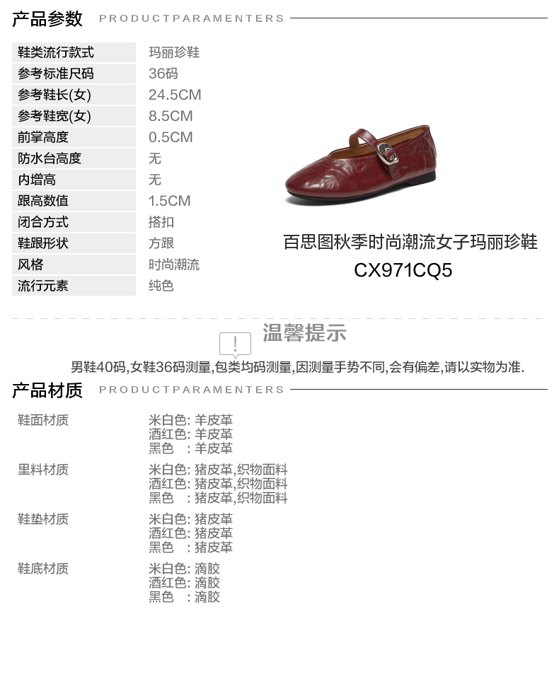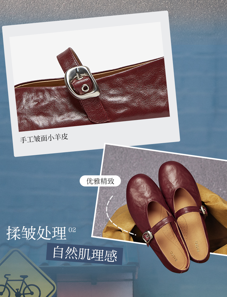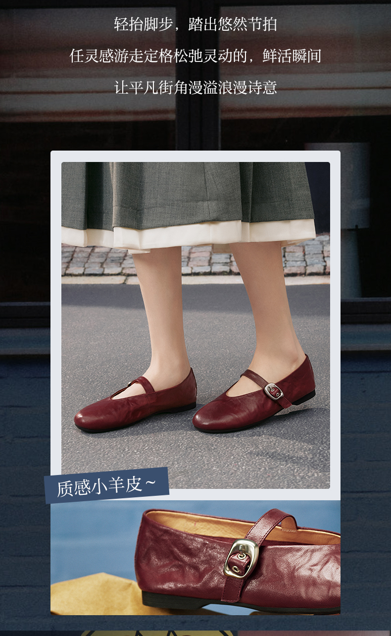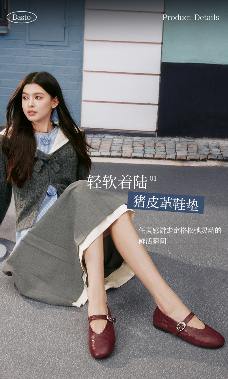 【云粉节】BF楼百思图26春新款超软羊皮玛丽珍鞋红色平底浅口女芭蕾单鞋CX971AQ6吊牌价799.现价439