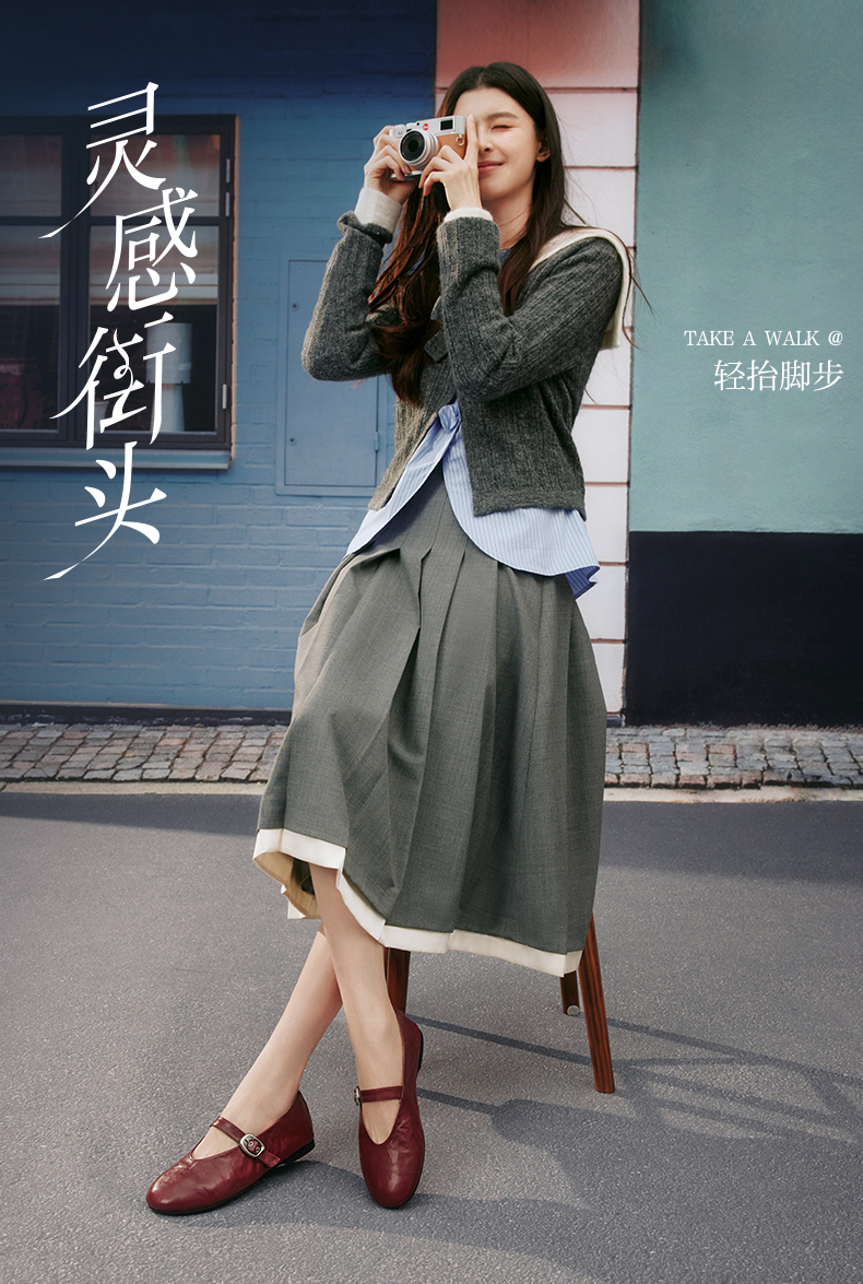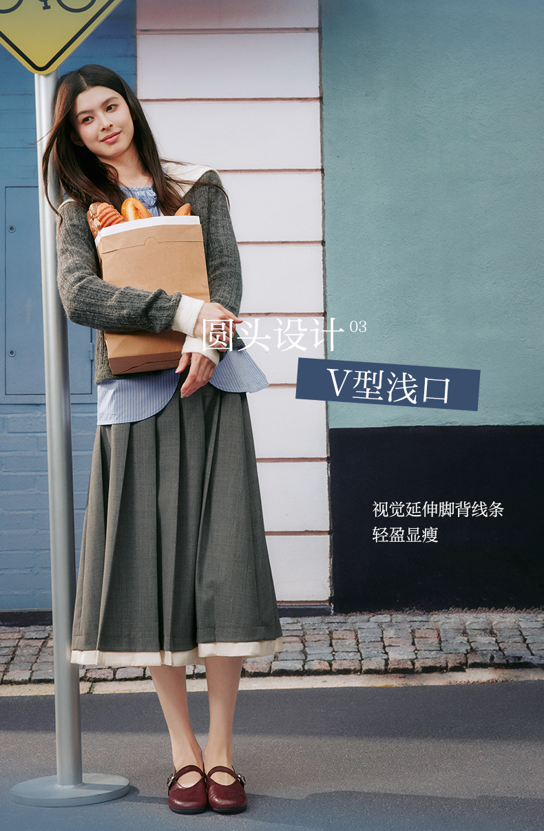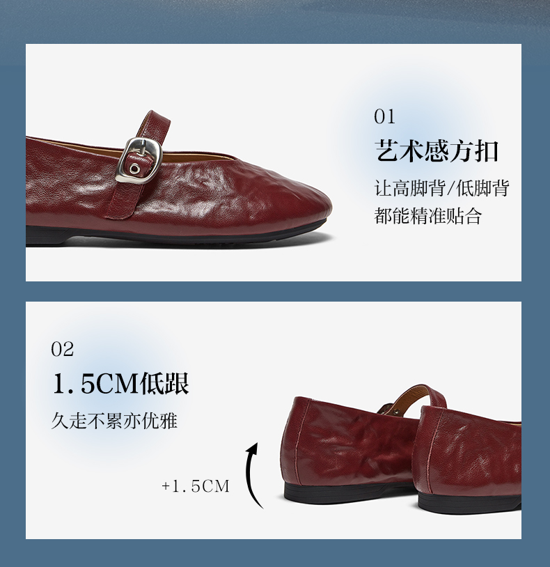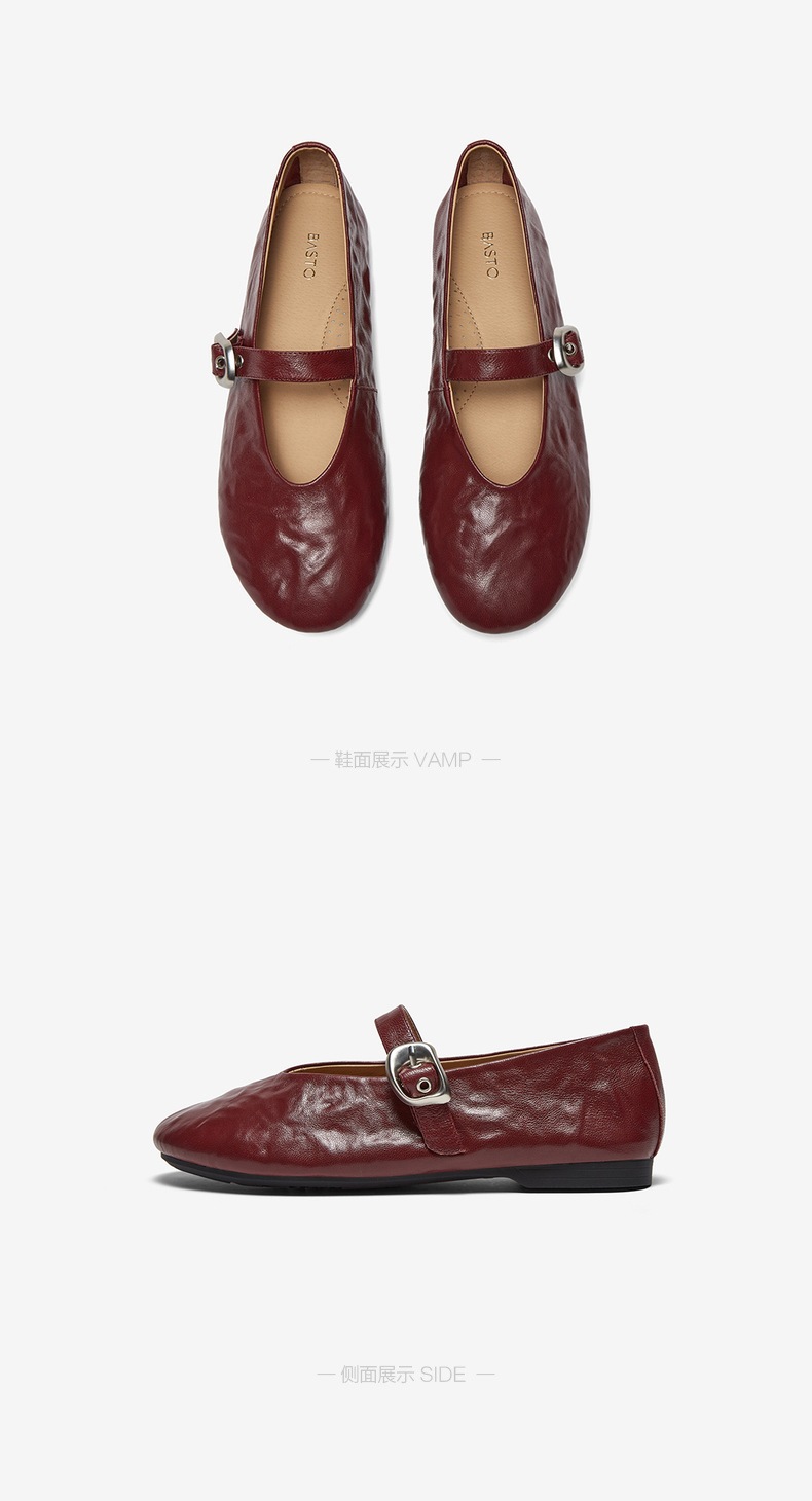 【云粉节】BF楼百思图26春新款超软羊皮玛丽珍鞋红色平底浅口女芭蕾单鞋CX971AQ6吊牌价799.现价439