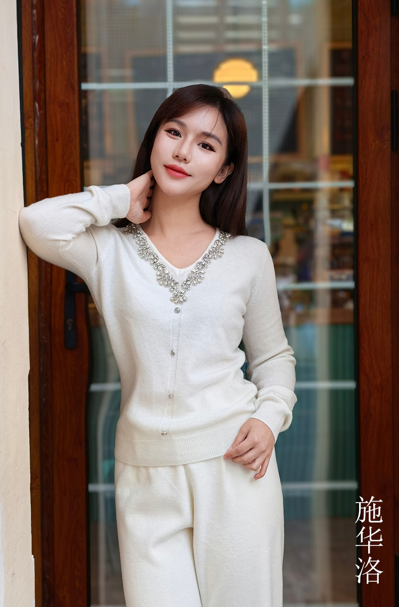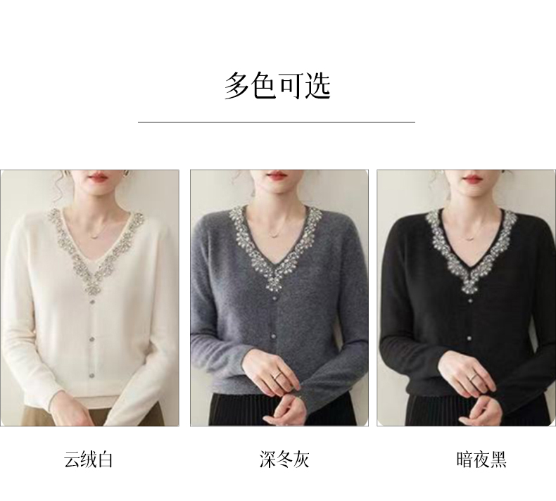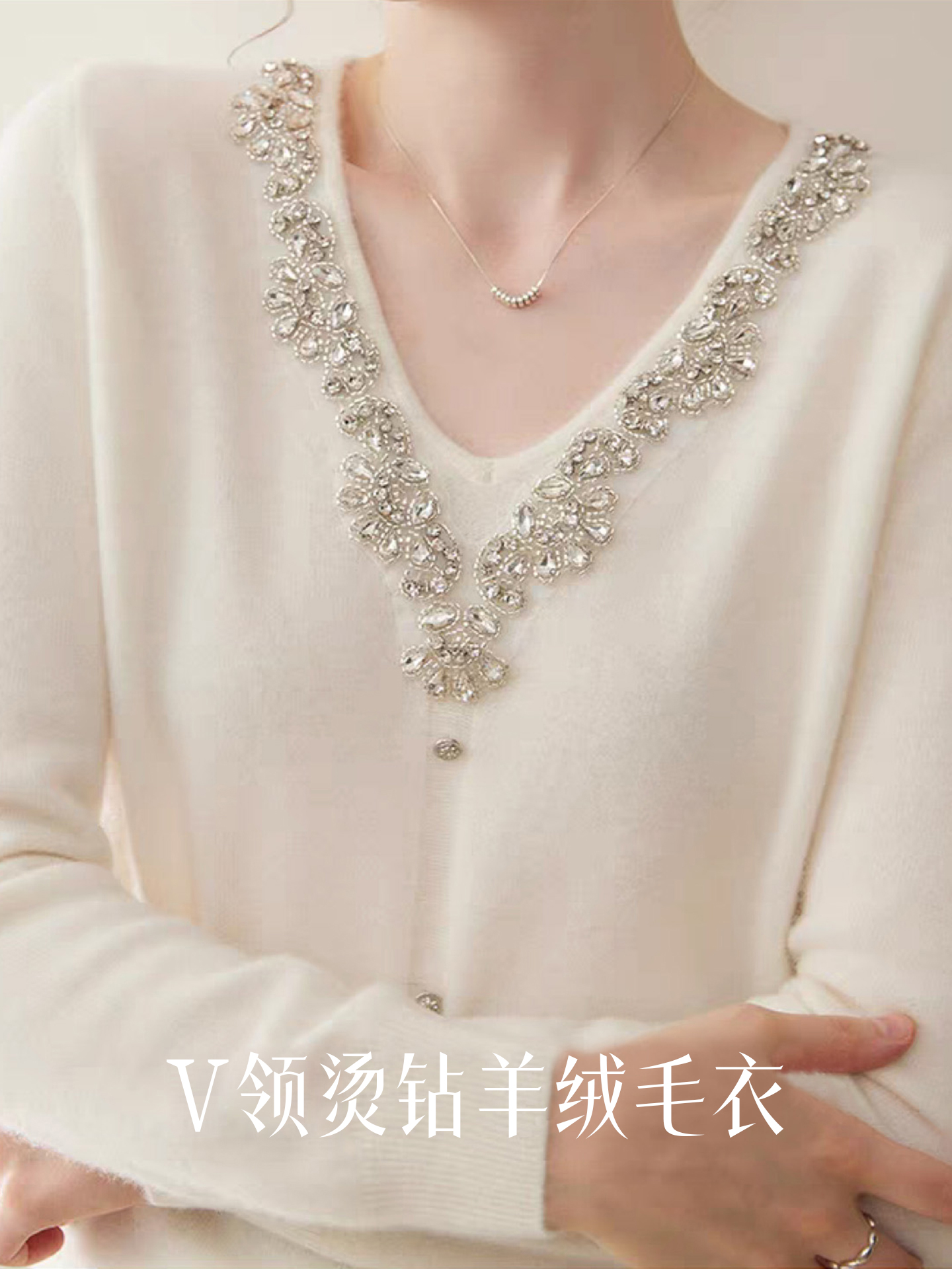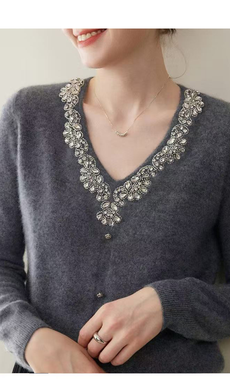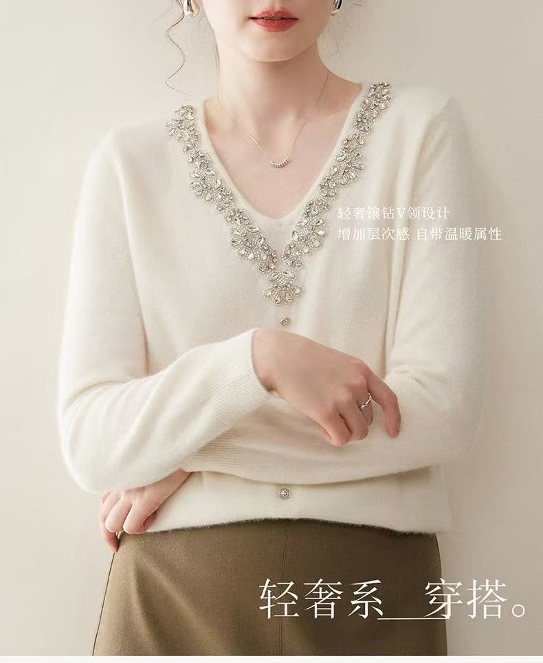 逸红颜明月优选#皇室重工镶钻毛衣『施华洛』云朵柔软V领羊绒衫,新年圣诞party礼服高级感毛衣