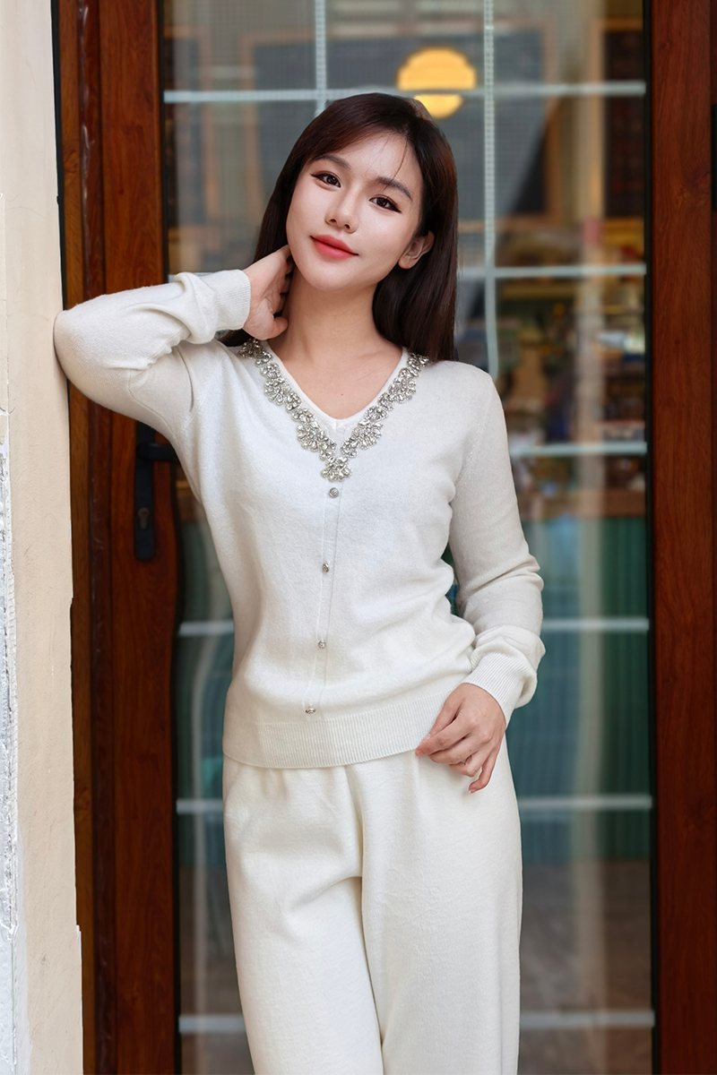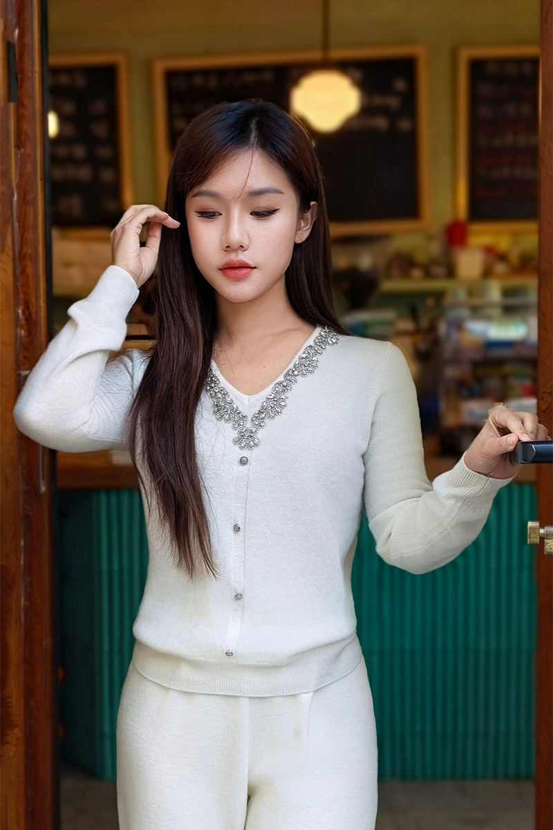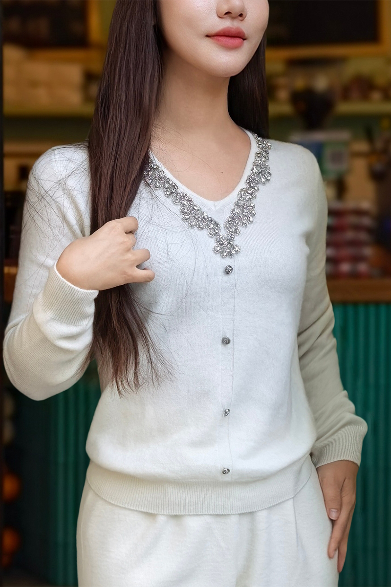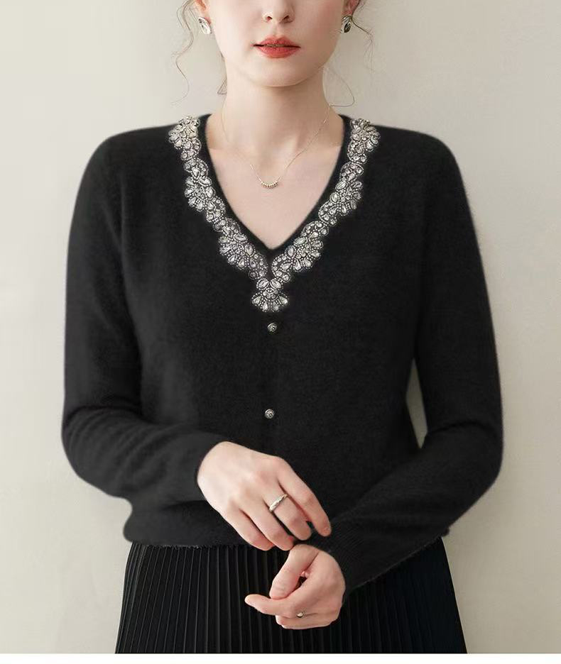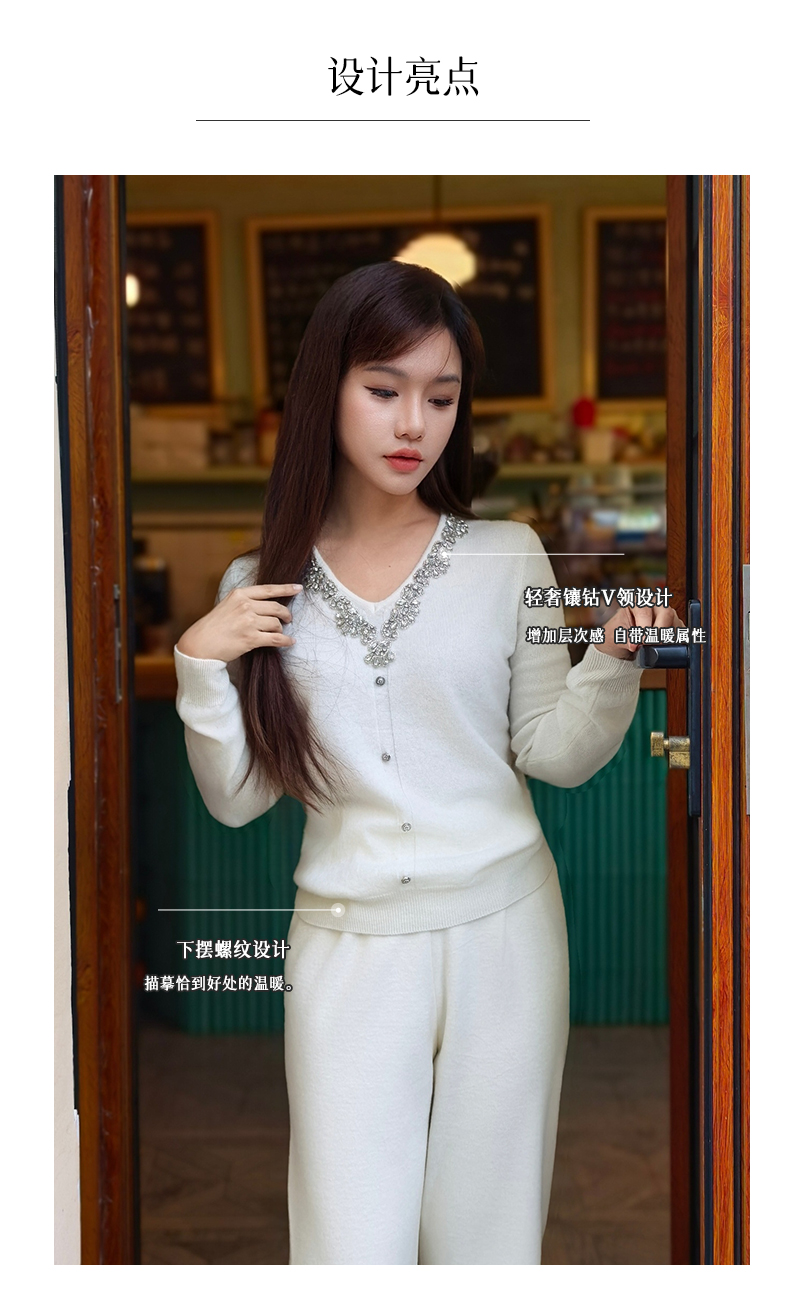 逸红颜明月优选#皇室重工镶钻毛衣『施华洛』云朵柔软V领羊绒衫,新年圣诞party礼服高级感毛衣