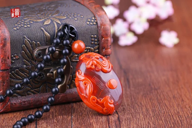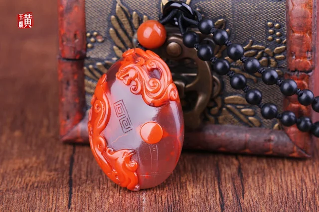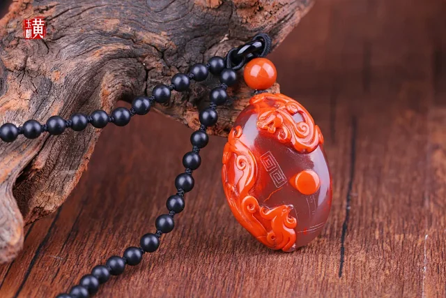 南红【龙凤】吊坠 配精美编织挂绳