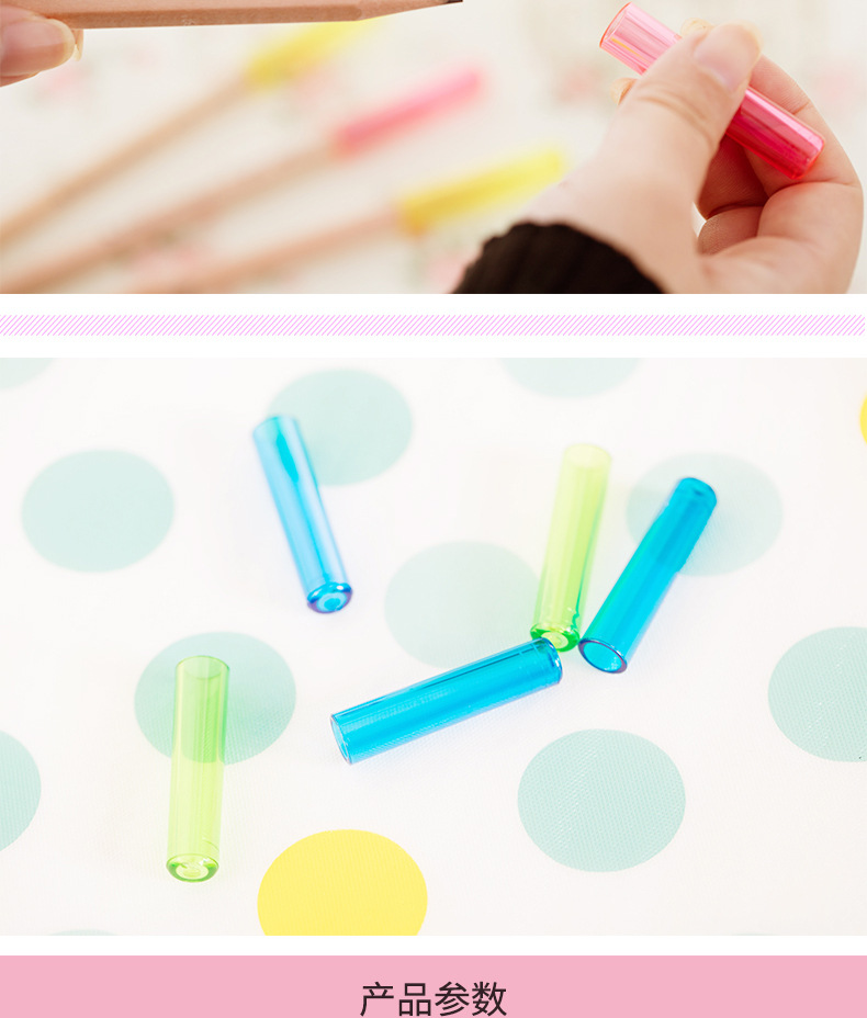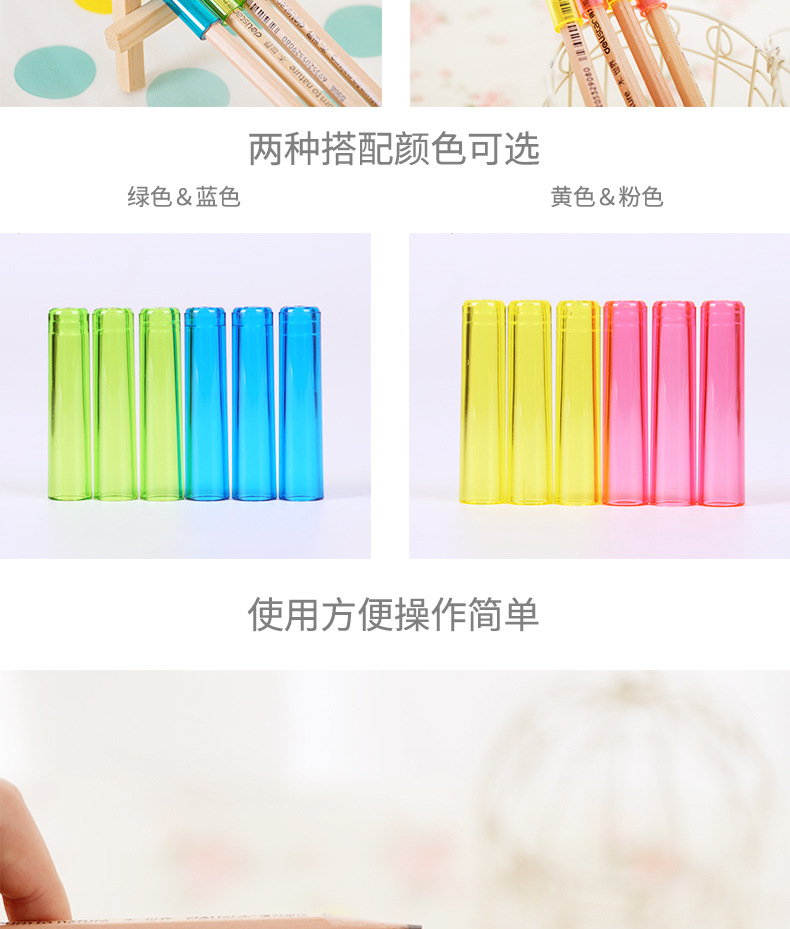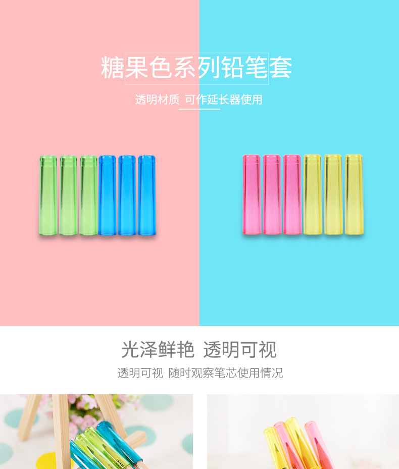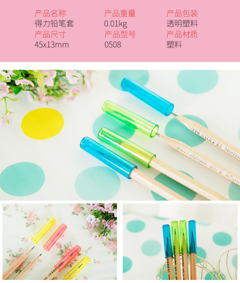 得力文具铅笔套6个/袋 0508笔帽 铅笔延长器彩色笔套铅笔笔盖(混色随机发)