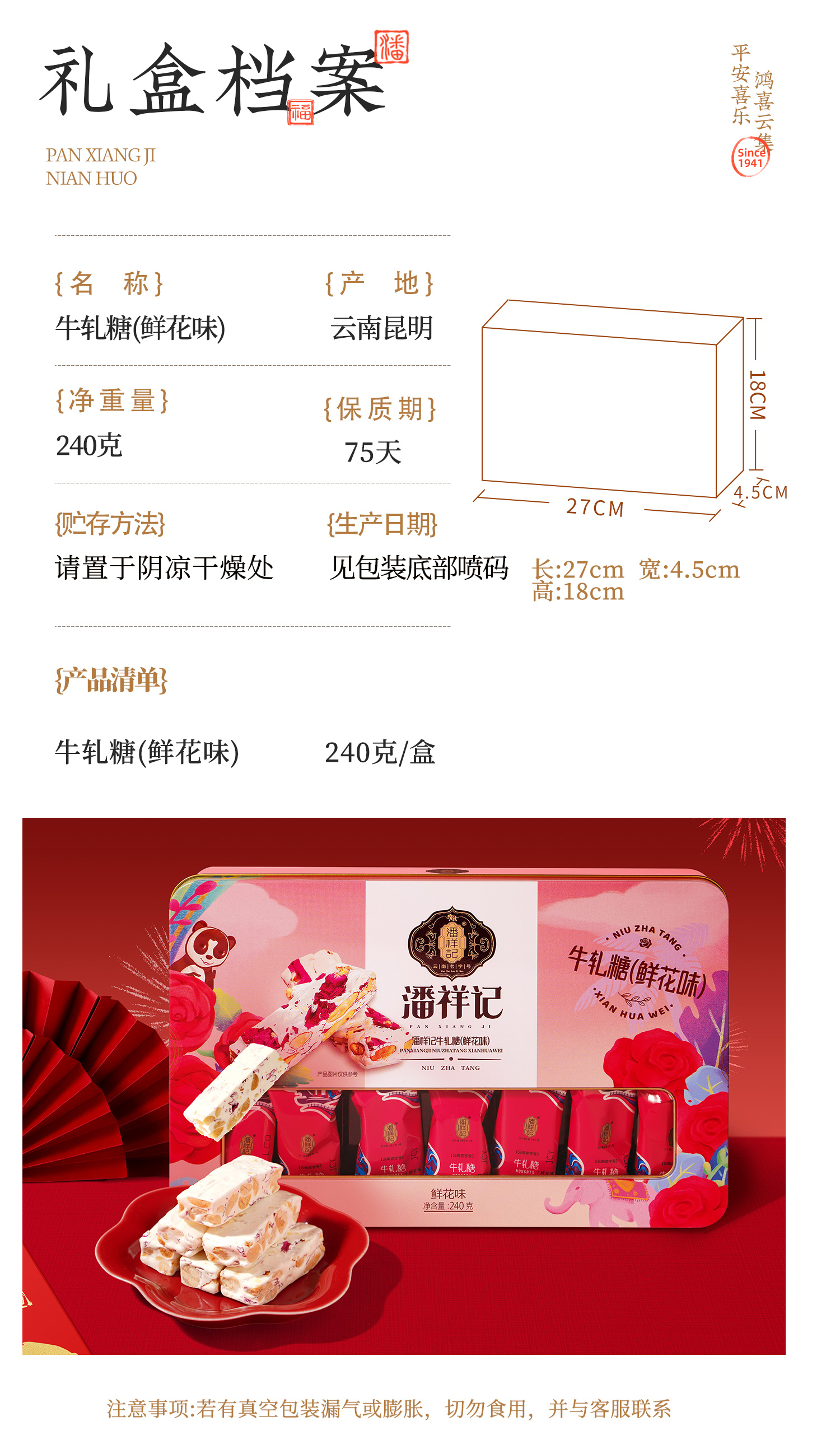 潘祥记官方旗舰店【240g铁盒牛轧糖】年货礼盒