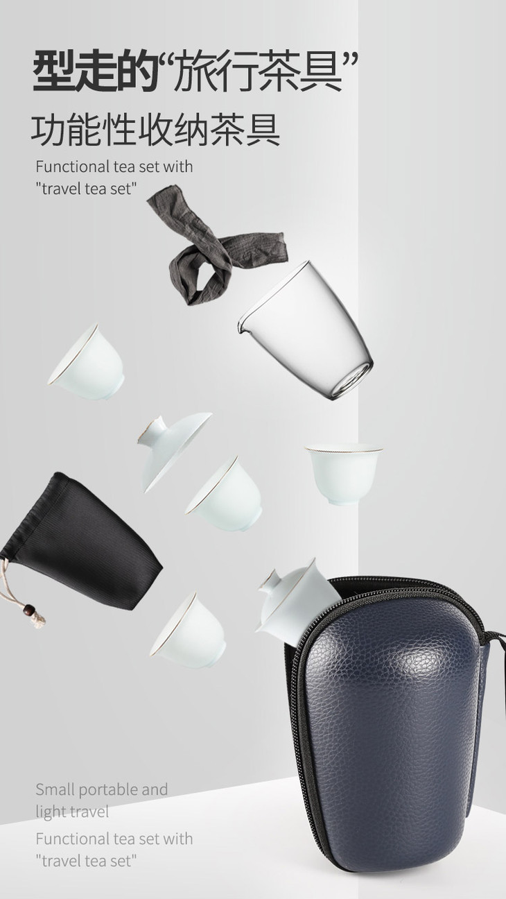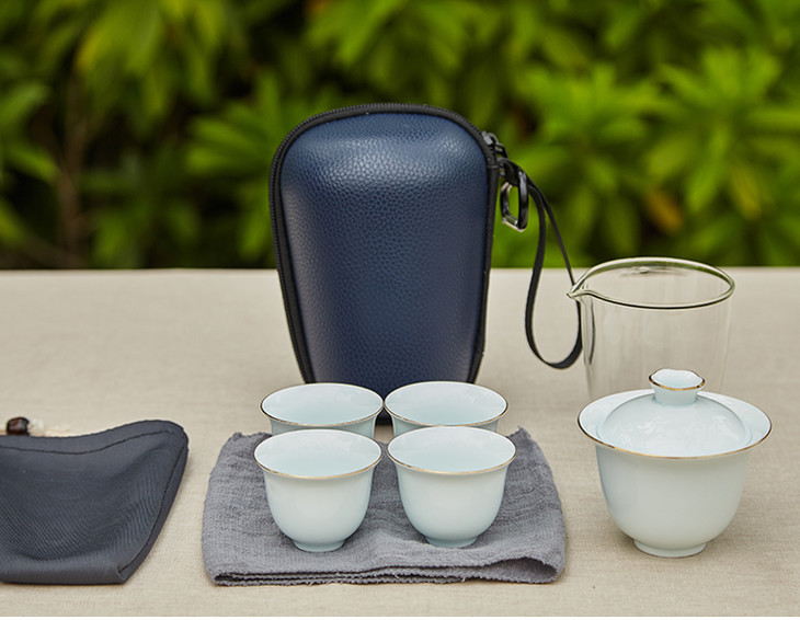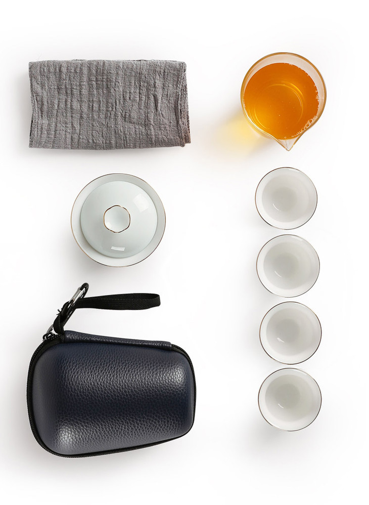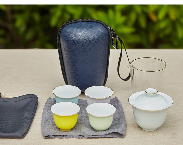 尚置丨茶旅便携旅行茶具套组 (盖碗*1,公道杯*1,品茗杯*4,茶巾*1,旅行包*1) 六色可选