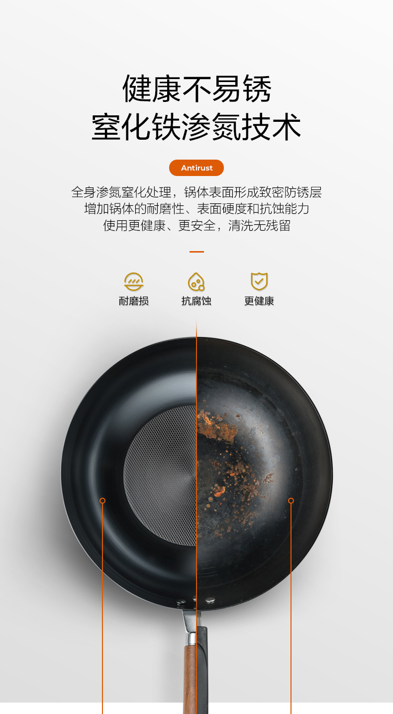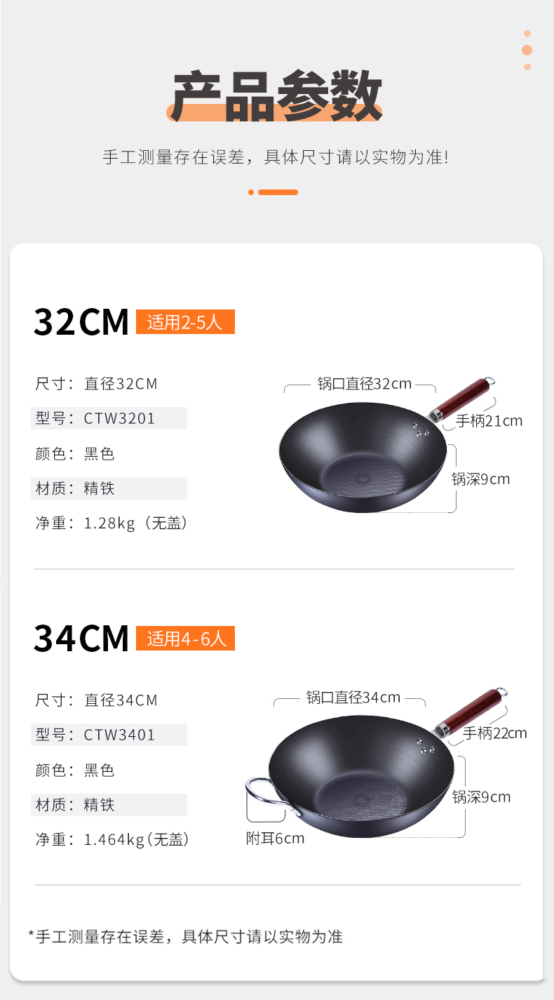 【铁釜炒锅】Joyoung/九阳CTW3201炒锅精铁无涂层燃磁通用32cm