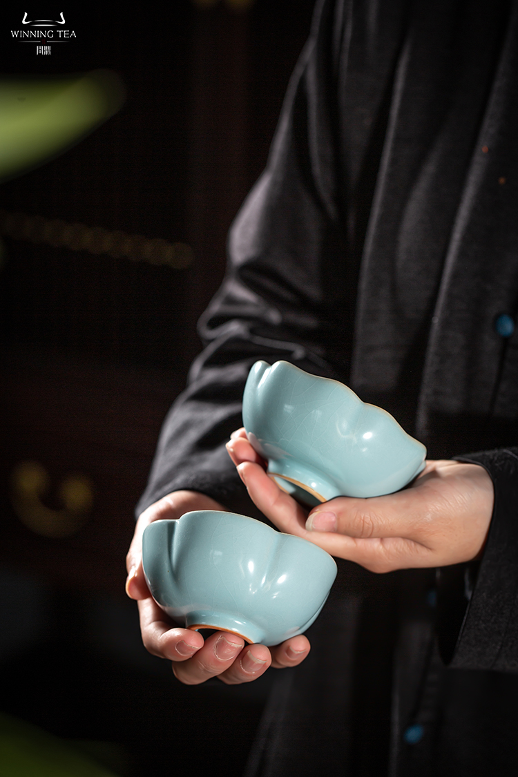 问鼎茶器丽人行汝窑菊纹杯 莲花杯 梅花杯(缺货)