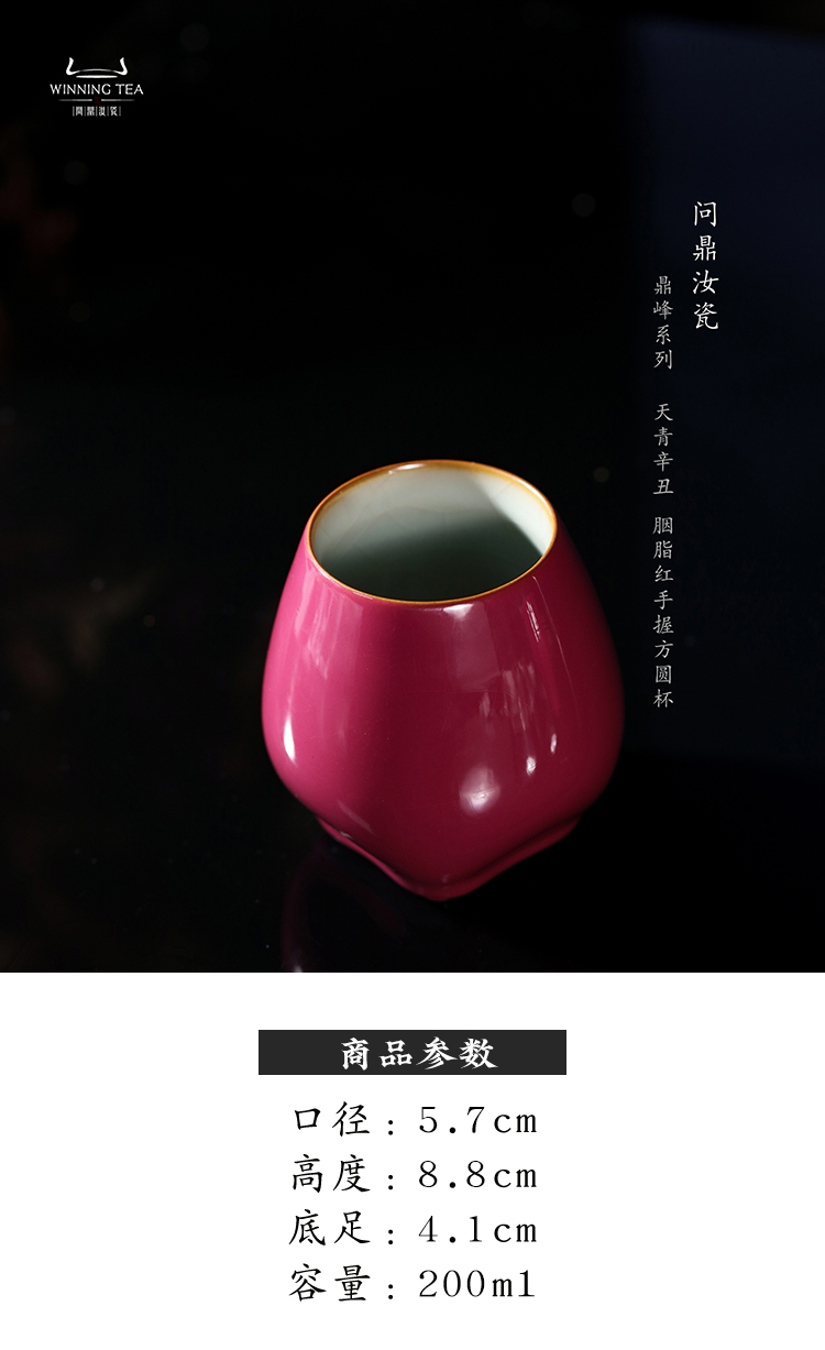 问鼎汝瓷鼎峰系列辛丑胭脂红手握方圆杯