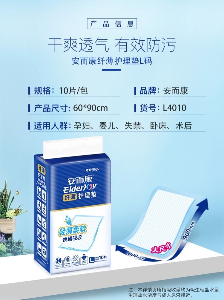 安而康 纤薄护理垫卫生垫 (60*90cm) L大码10片装