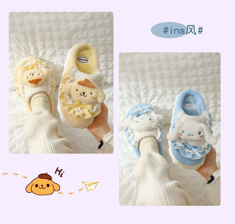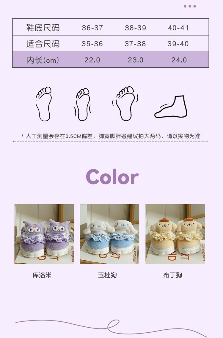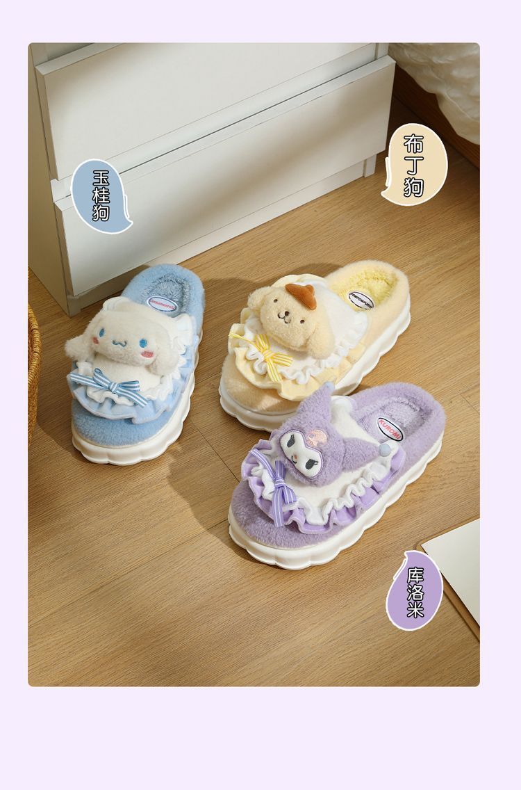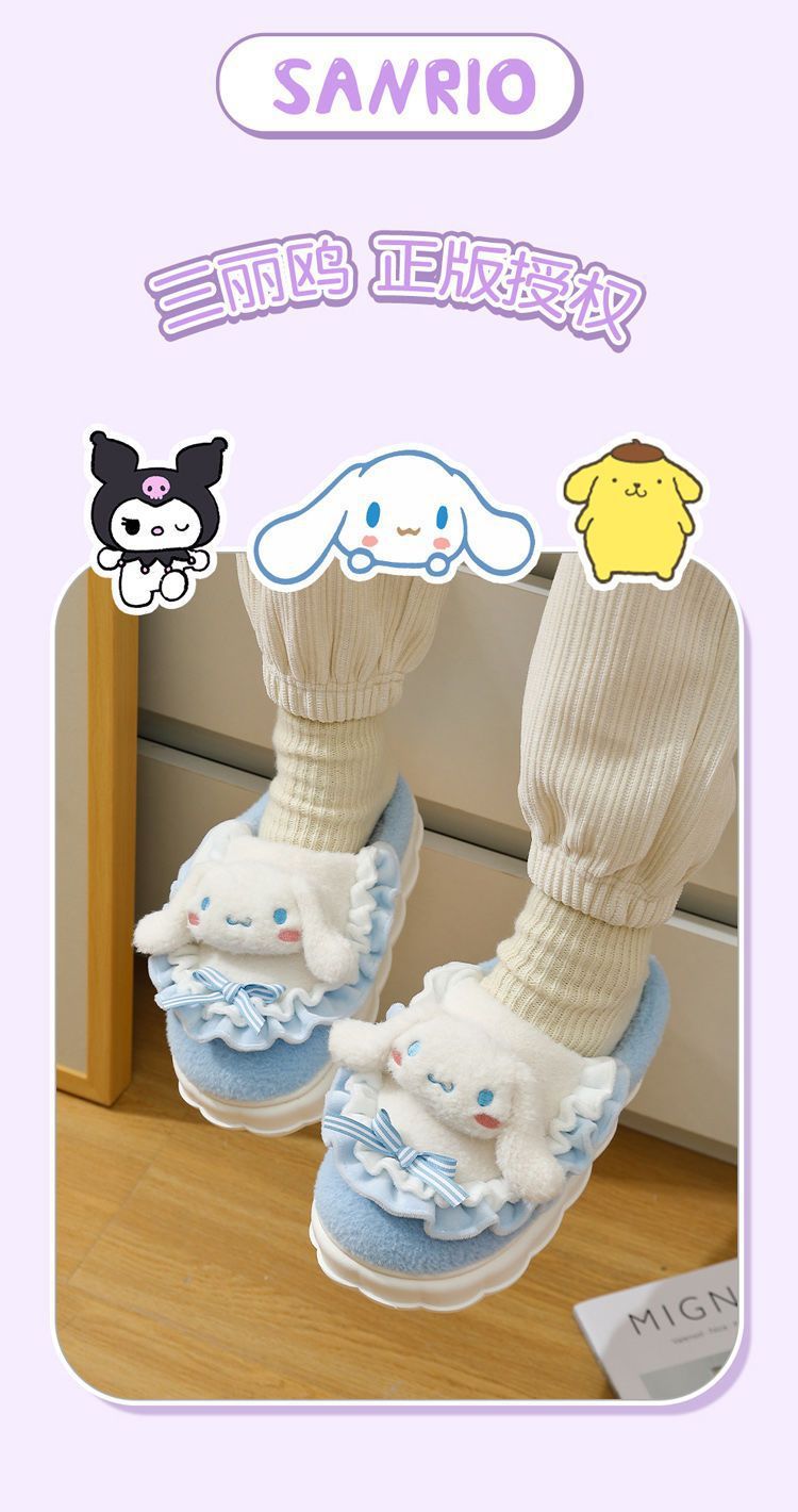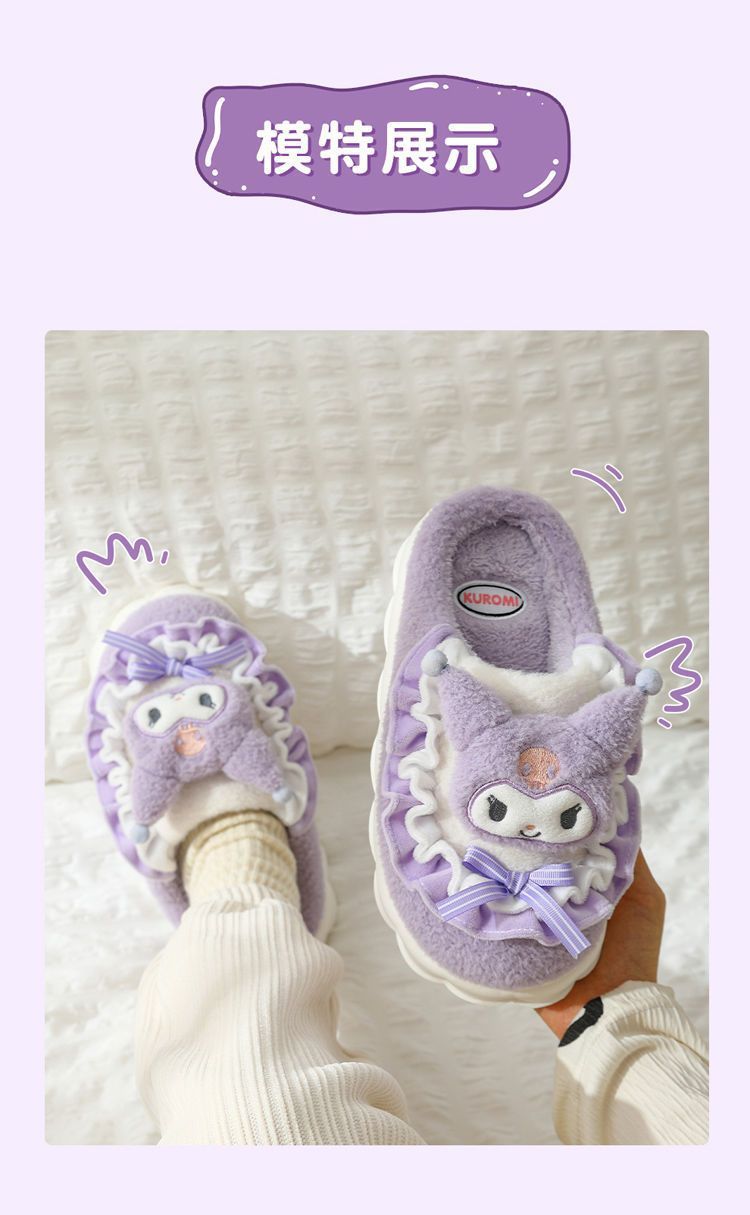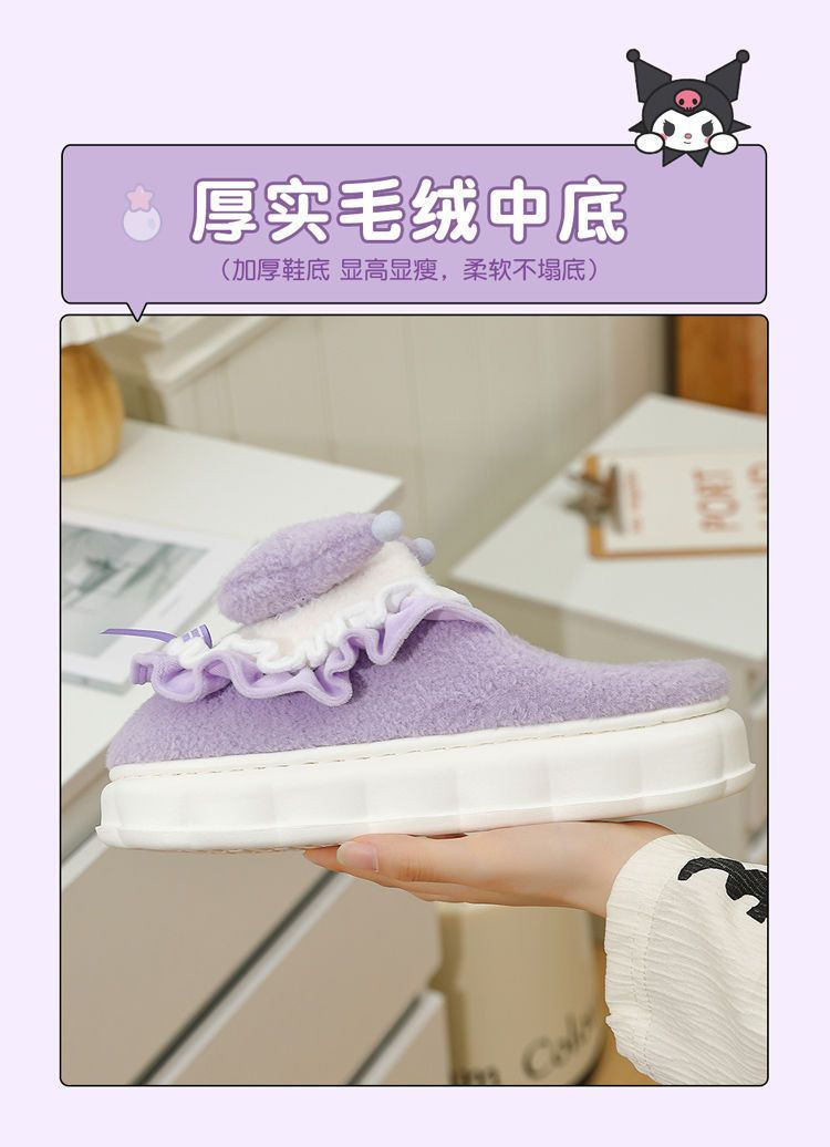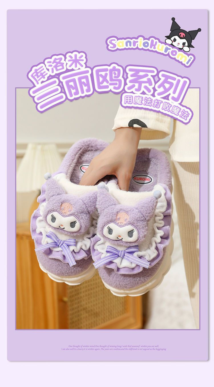 【用魔法打败魔法!库落米三丽鸥系列】可爱甜美卡通形象,加厚鞋底,显高柔软不塌底,女居家家用软底增高舒适可爱款棉拖鞋L