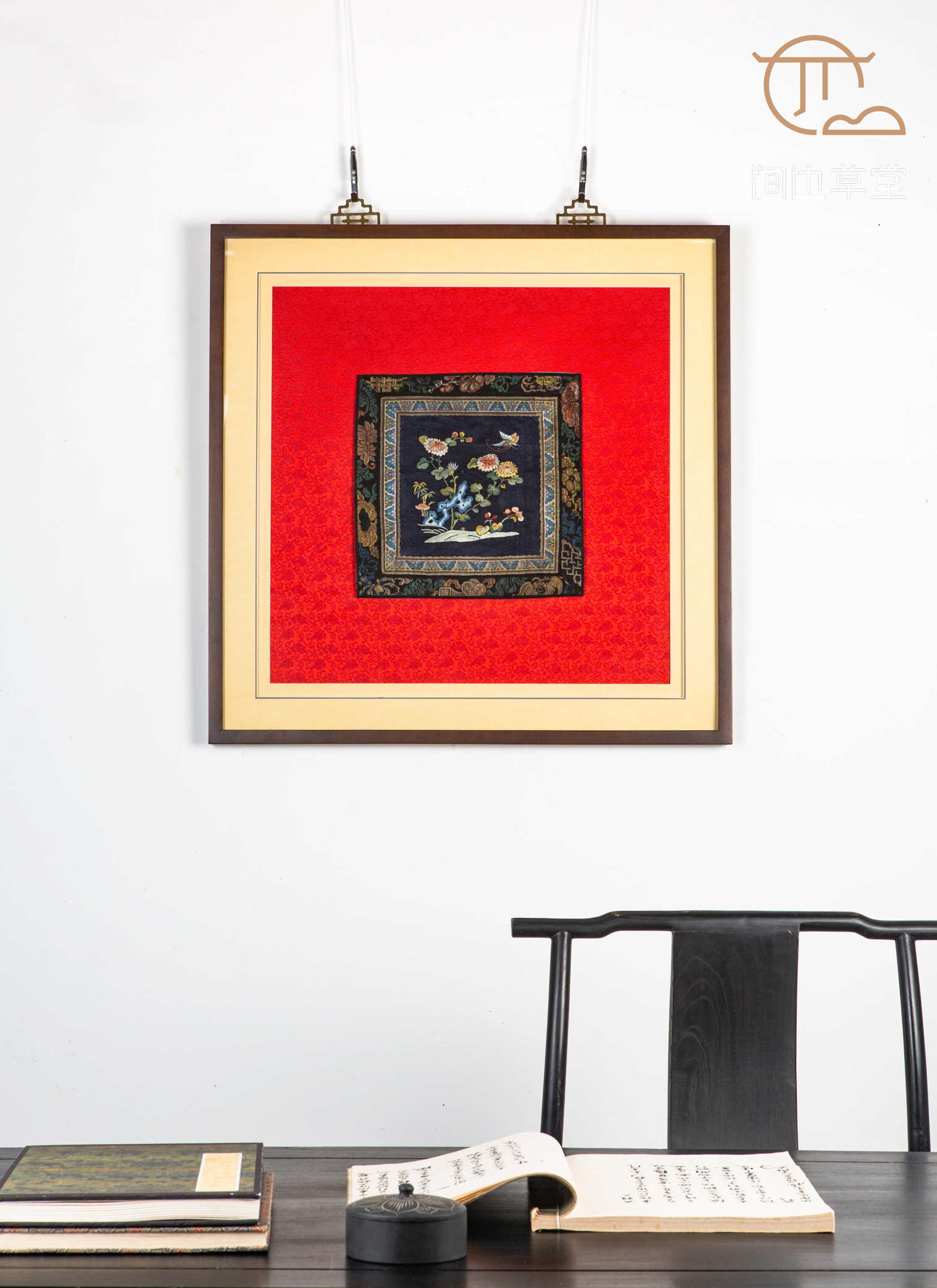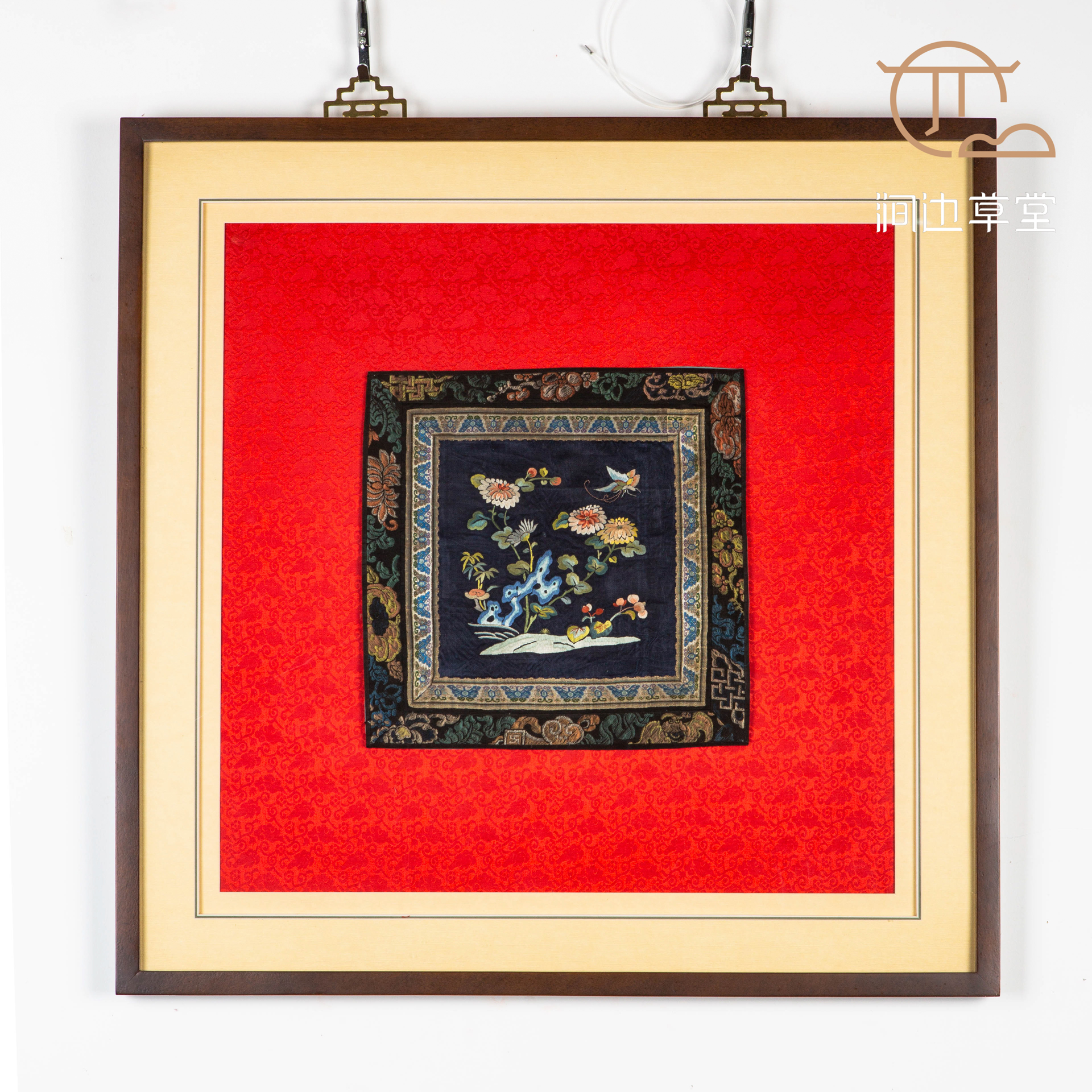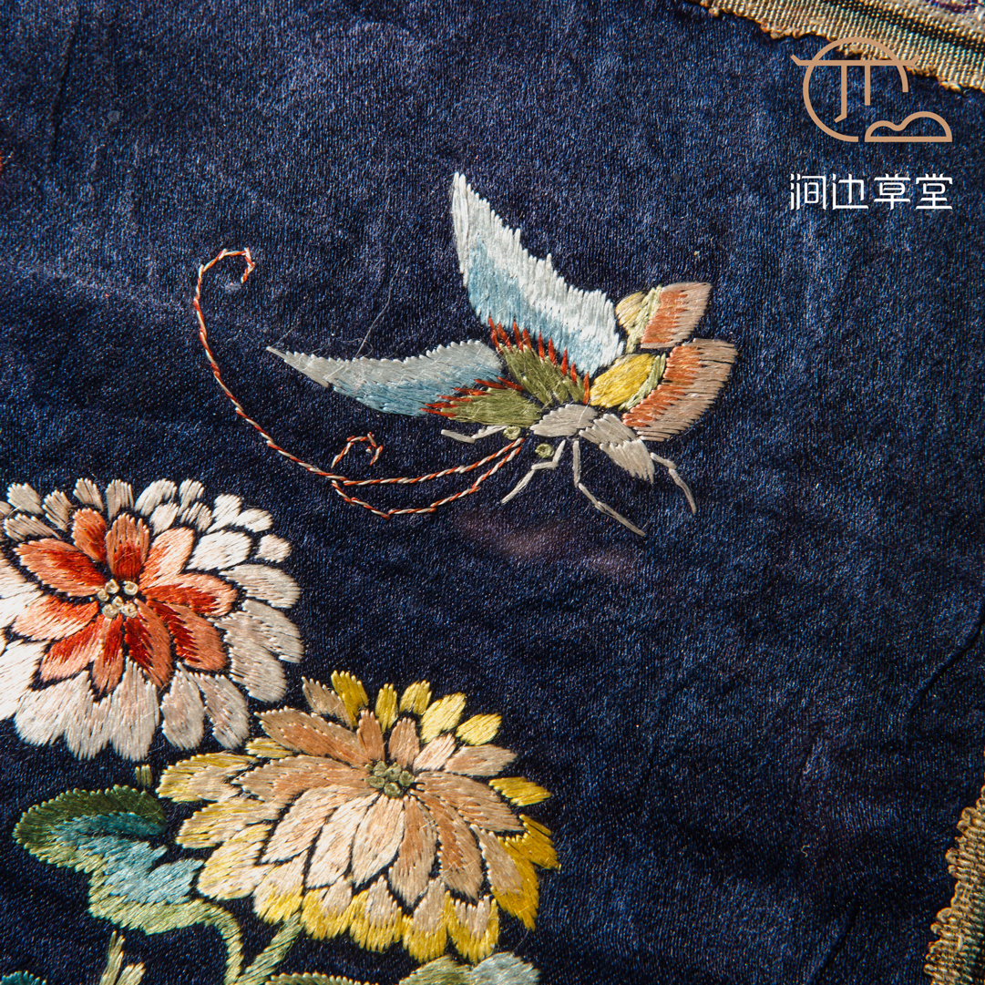 此为清代蝶恋花老刺绣,保存完好,文雅古朴,生动传神,已装裱配框。