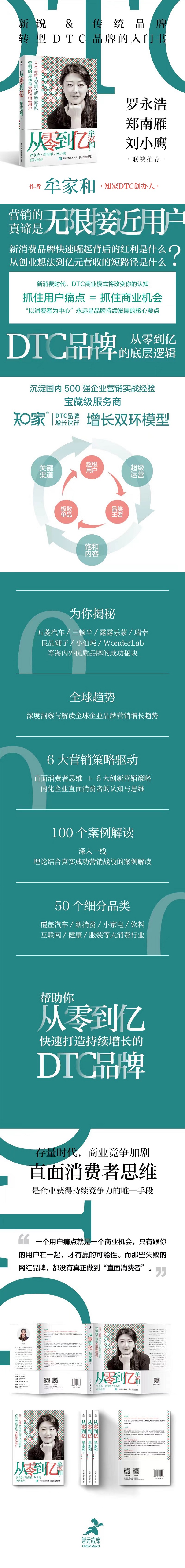 在定位的基础上,DTC 能够让品牌更好地围绕用户需求来打磨产品和服务,进而反向推动供应链的建设,从而有效建立品牌与用户的良性互动和双向循环。本书帮助中国本土品牌掌握DTC双环增长模型方法论,对*单品、*用户、品类*的DTC品牌创新方法论,以及关键渠道、饱和内容、*运营的DTC品效销核心手段进行了详细的阐述。少走弯路,缩短创新周期,降低试错成本,创造更多从0到亿的销售奇迹。与此同时,书中从实际案例入手,对于用户也进行了重新定位和理解。告诉读者从一个创业创新的想法开始到完成 1 亿元的销售收入需要多长时间,落后的企业可能需要几年,先进的企业可能只需要几个月,这个从零到亿的时间差,*是企业的核心竞争力,体现了企业对营销的*高认知。