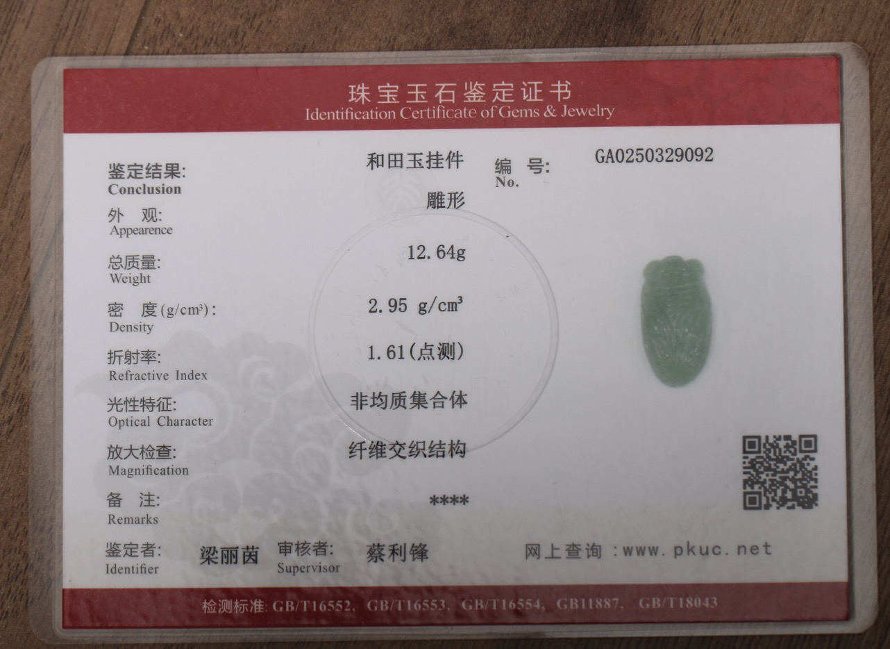 和田碧玉玉蝉【一鸣惊人】吊坠 配精美挂绳
