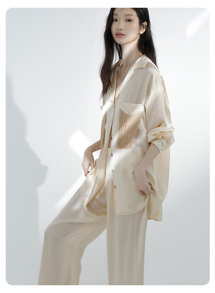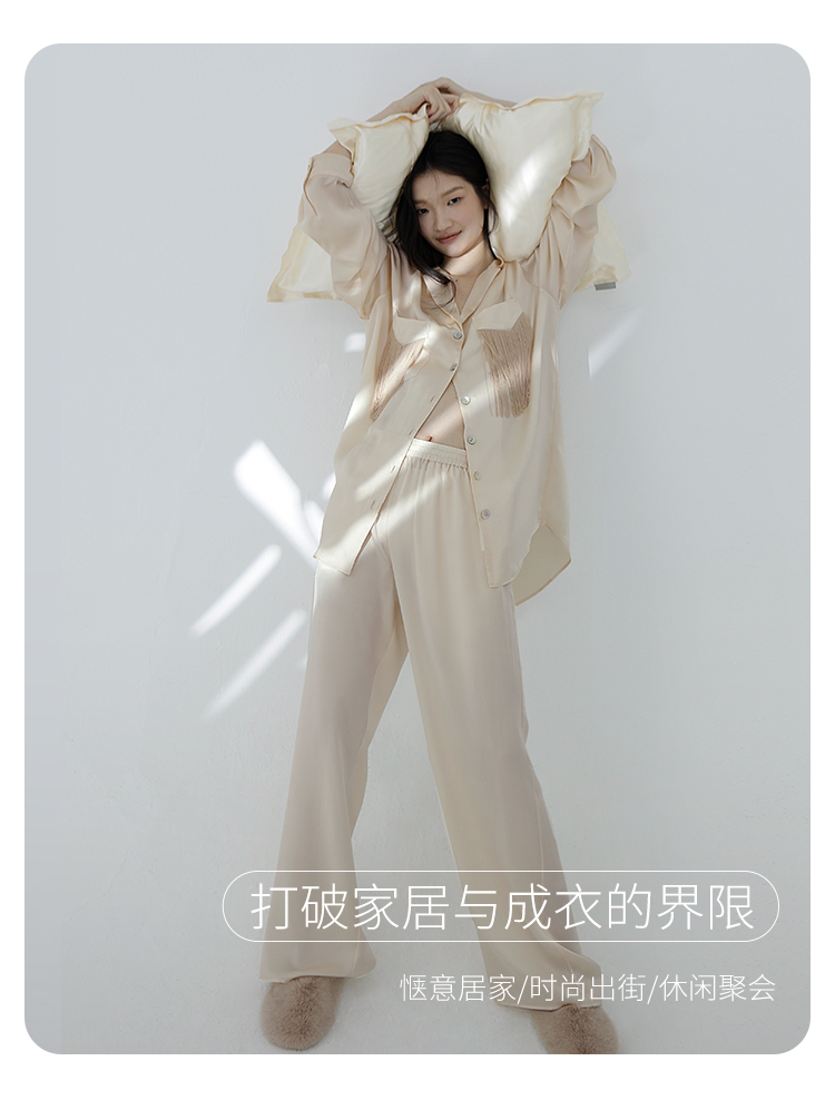 雅【新品】SANGLUO桑罗真丝睡衣套装流苏设计休闲可外穿派对家居服