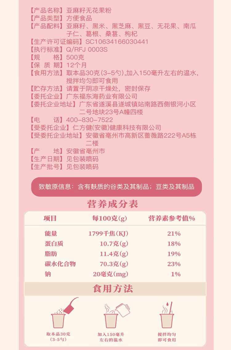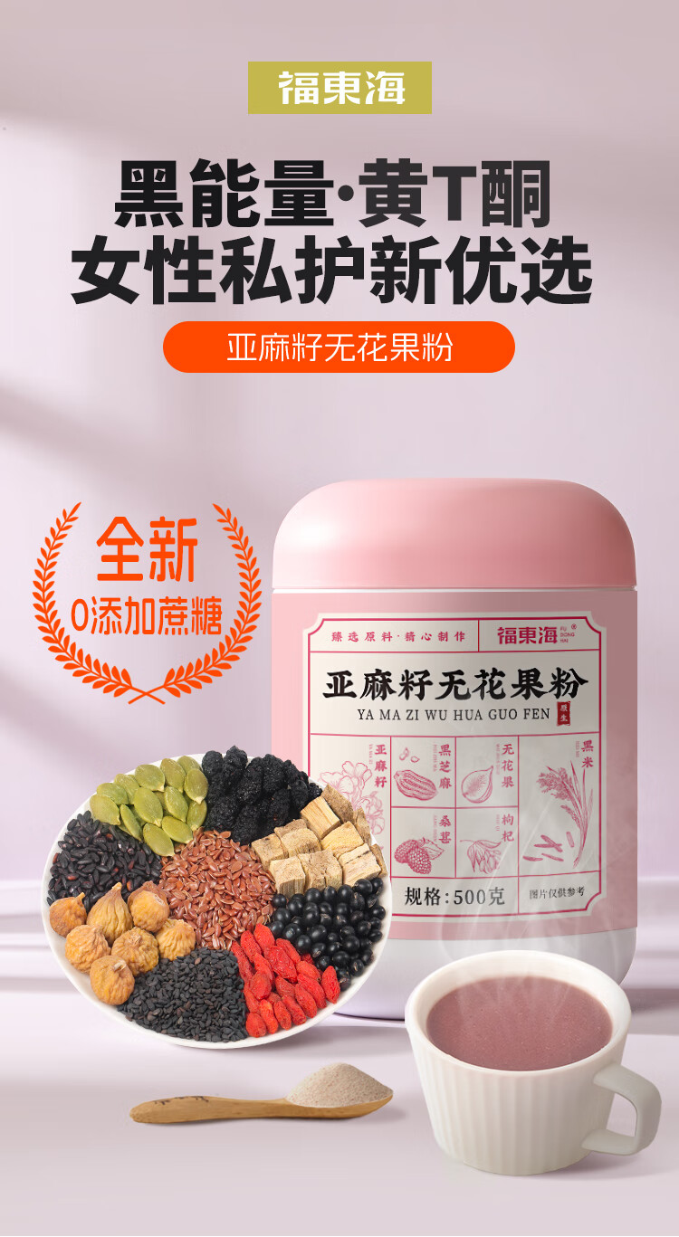 福东海 亚麻籽无花果粉500g 天然黄T酮无糖女性养护雌养卵代巢餐种子循环