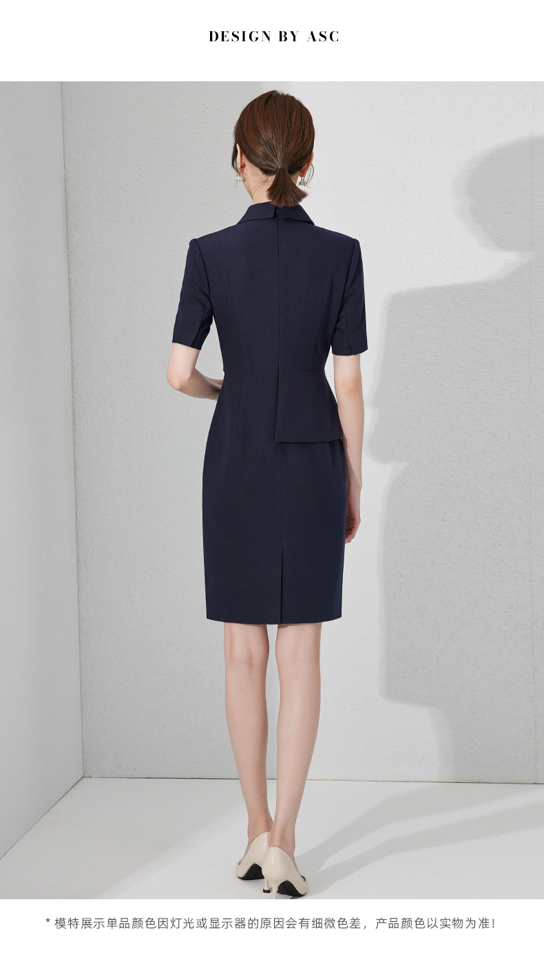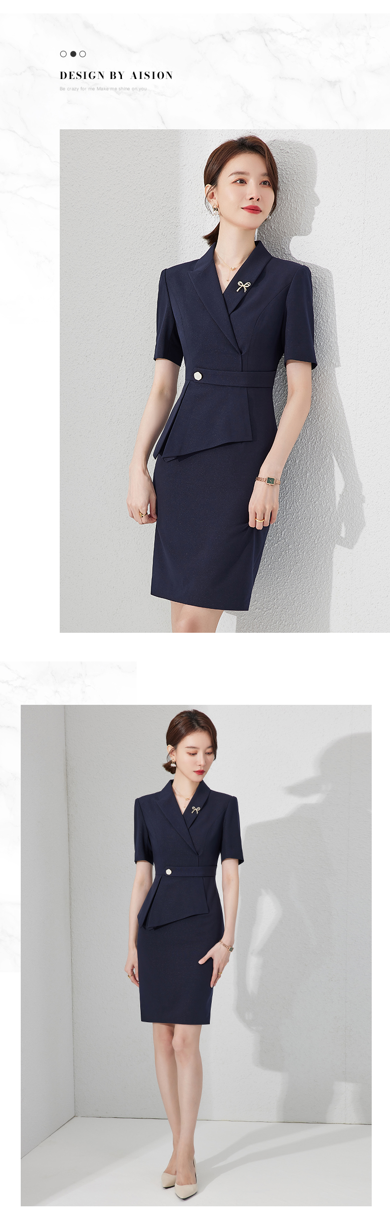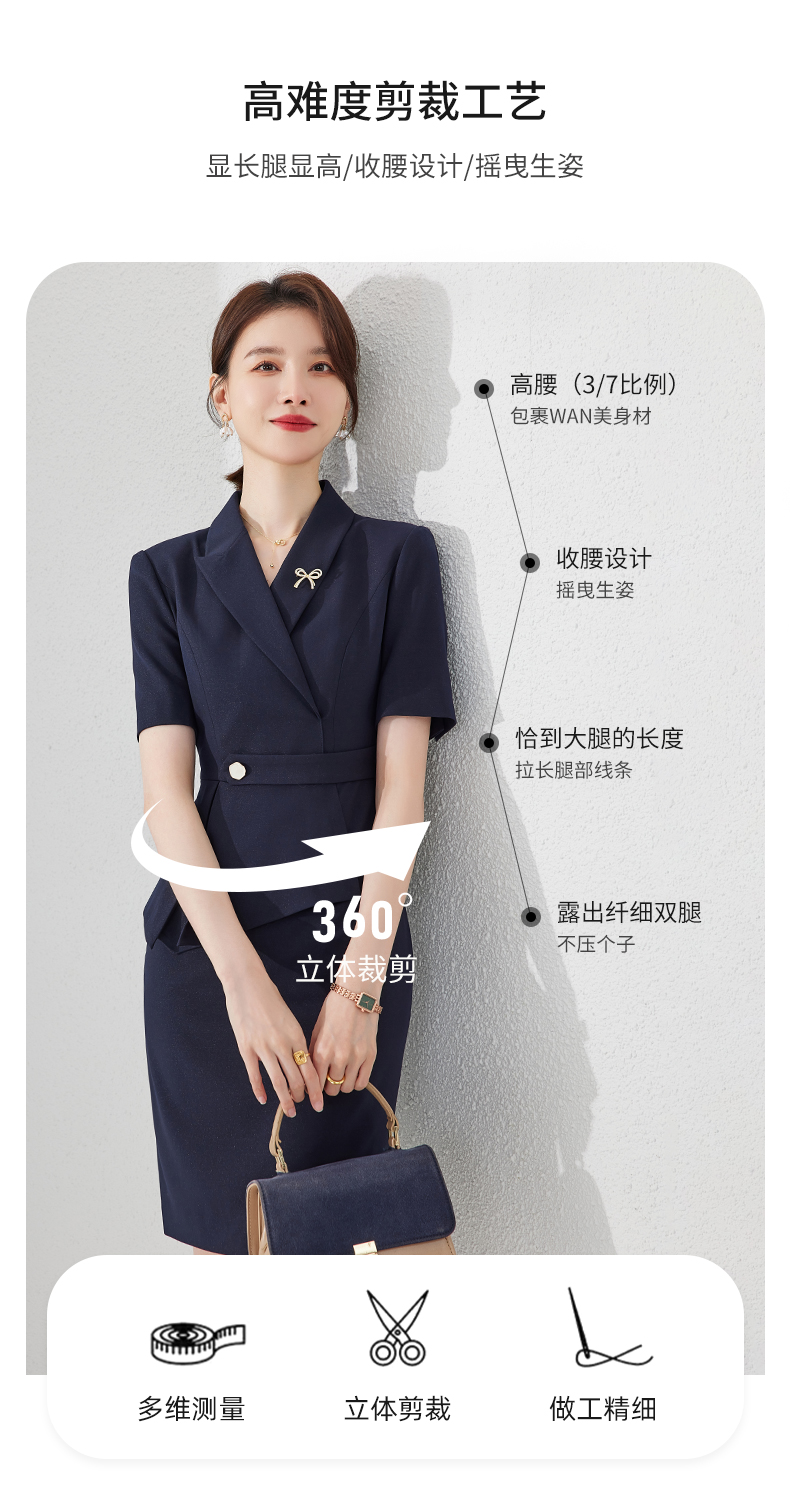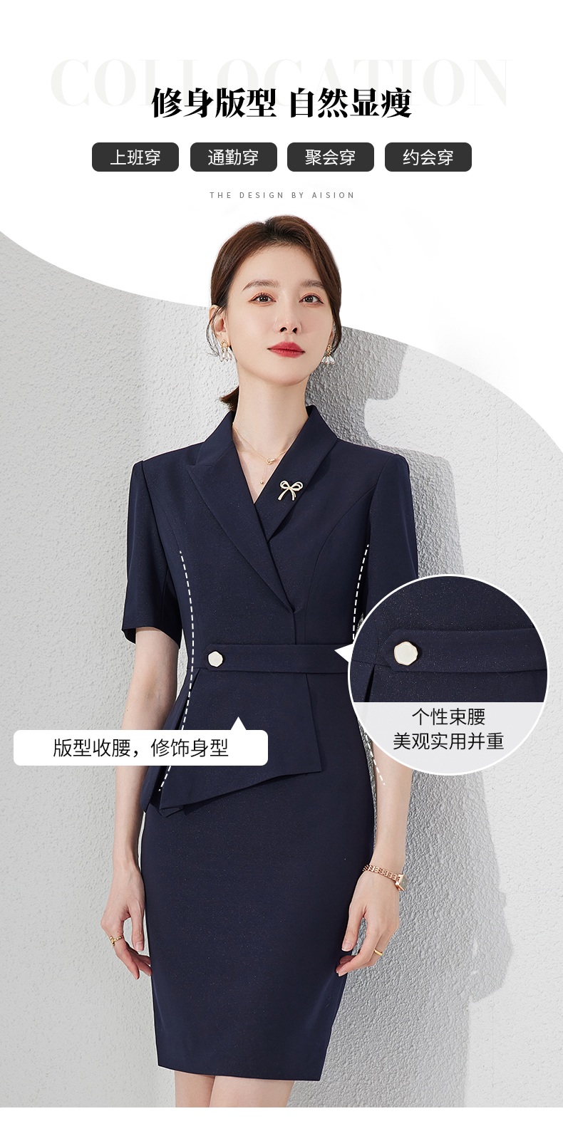 艾尚臣夏季女藏青气质高级感西装包臀职业连衣裙送胸针工装