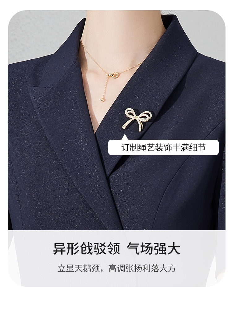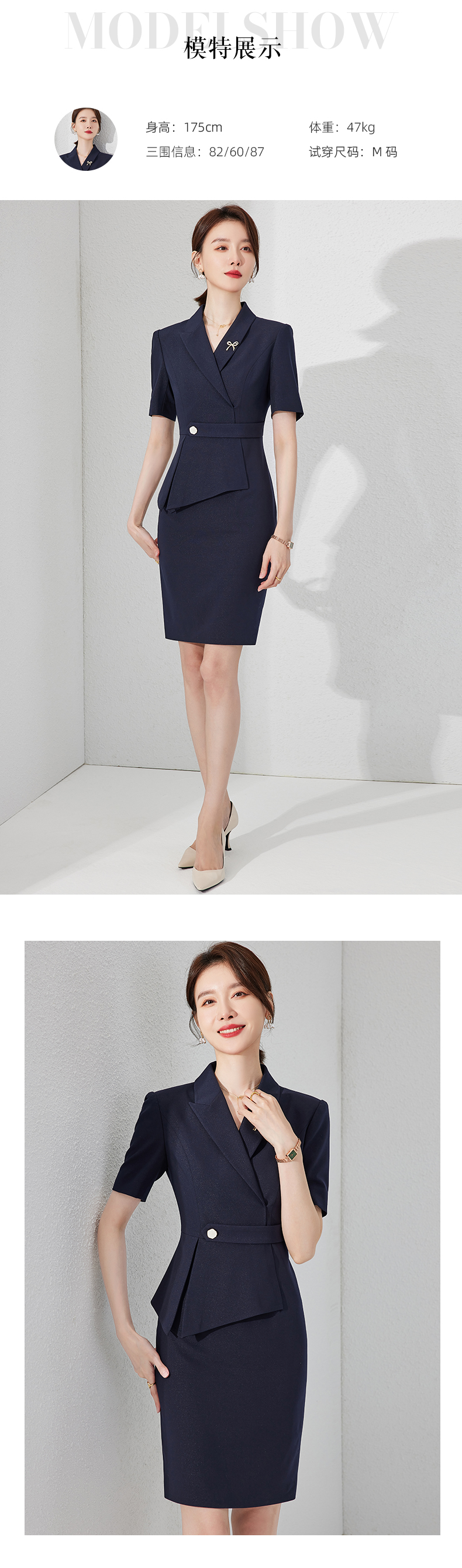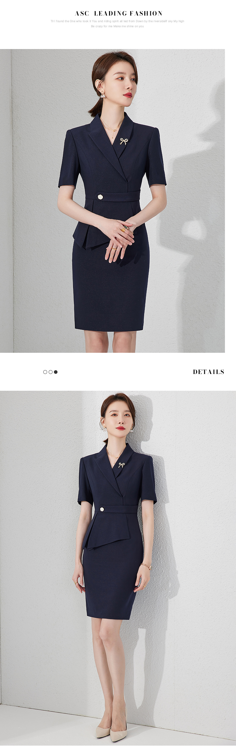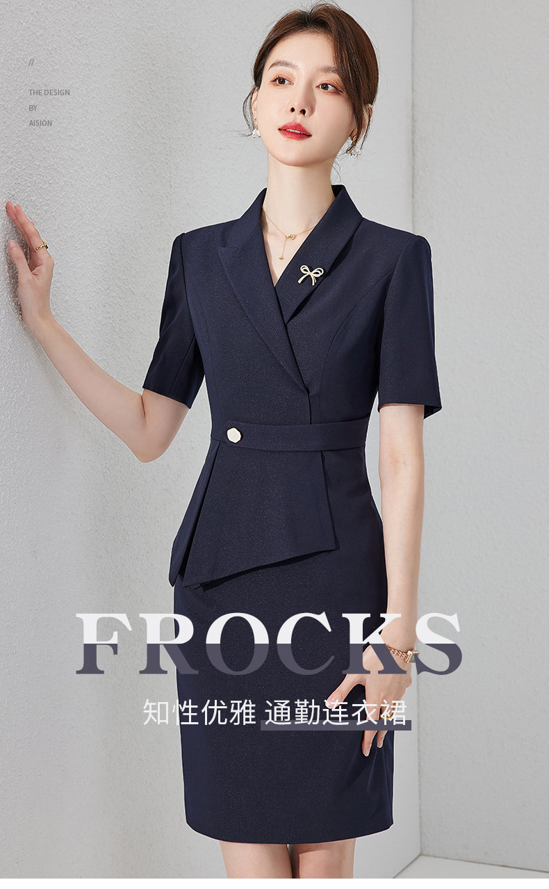 艾尚臣夏季女藏青气质高级感西装包臀职业连衣裙送胸针工装