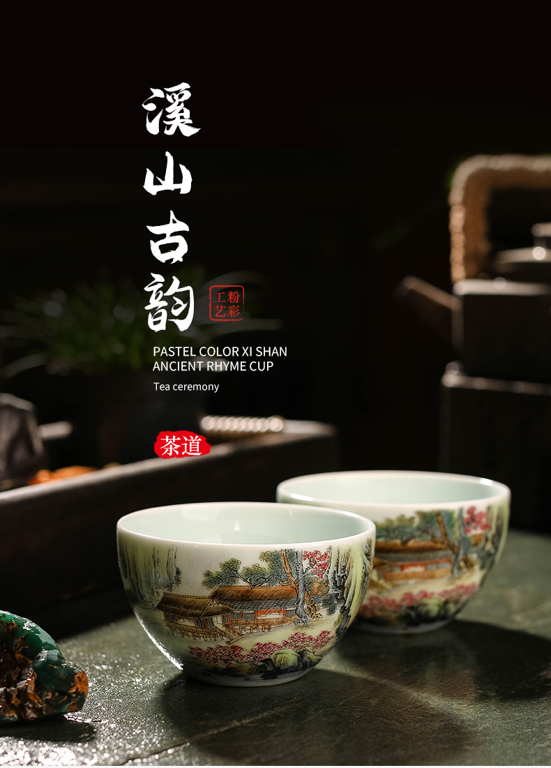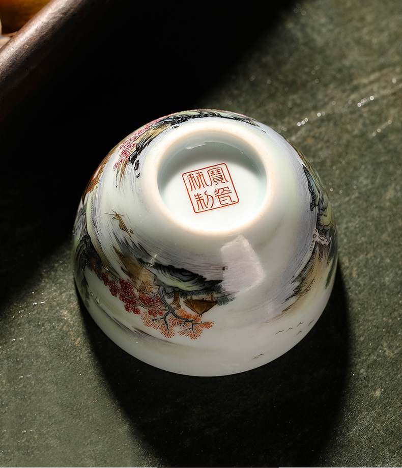 粉彩溪山古韵杯