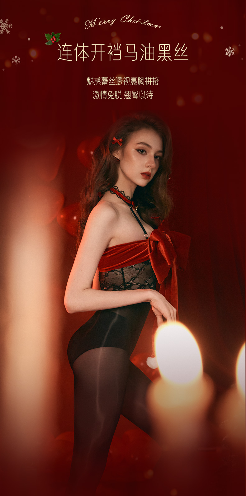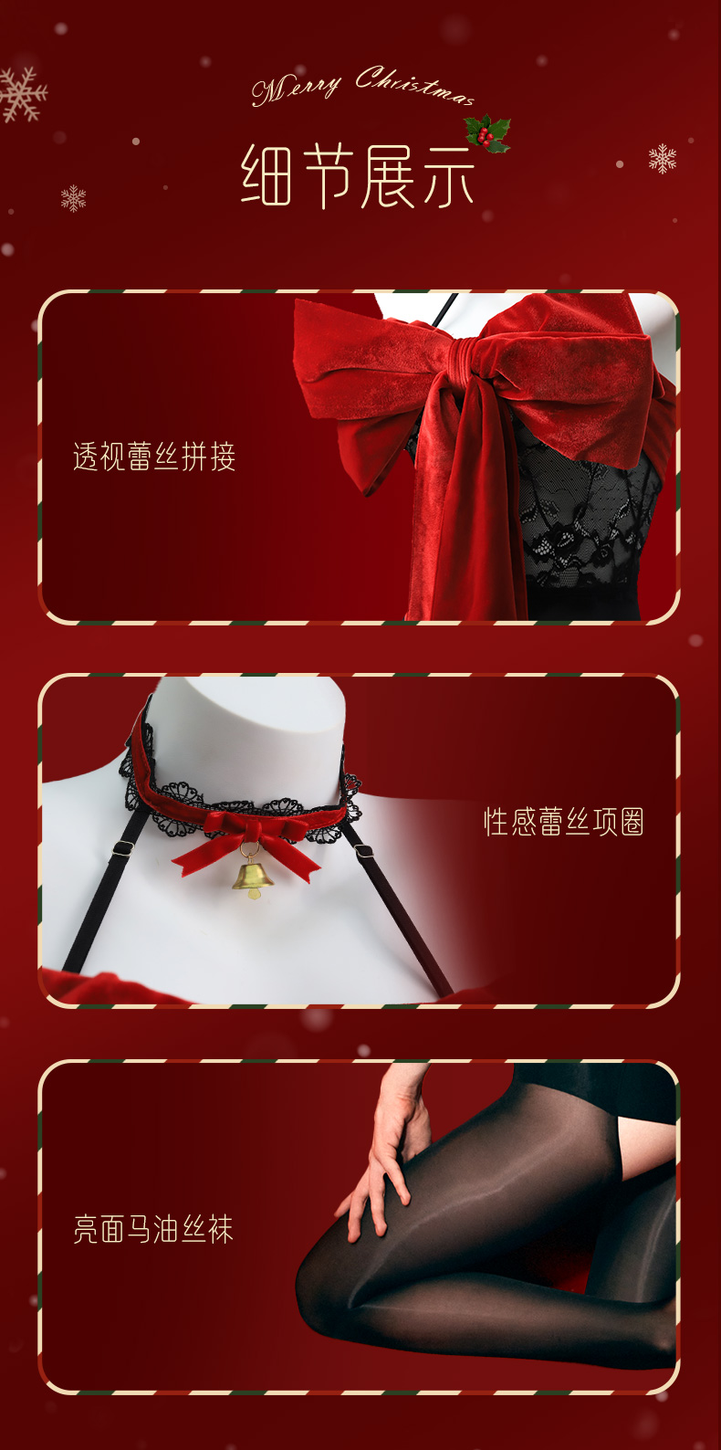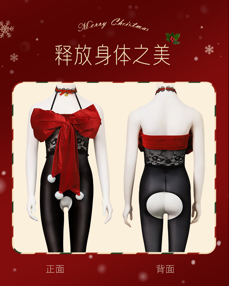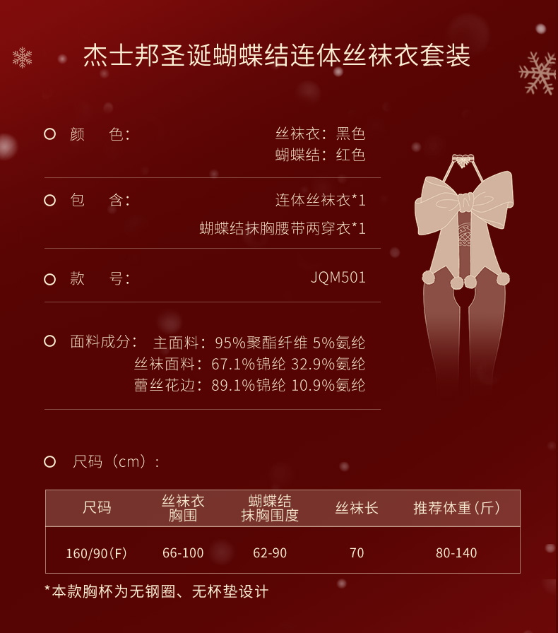 杰士邦圣诞蝴蝶结连体丝袜衣套装