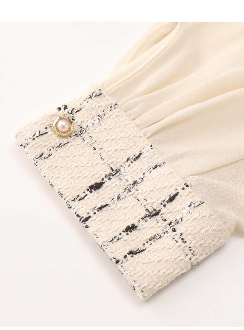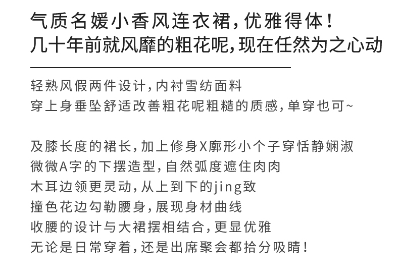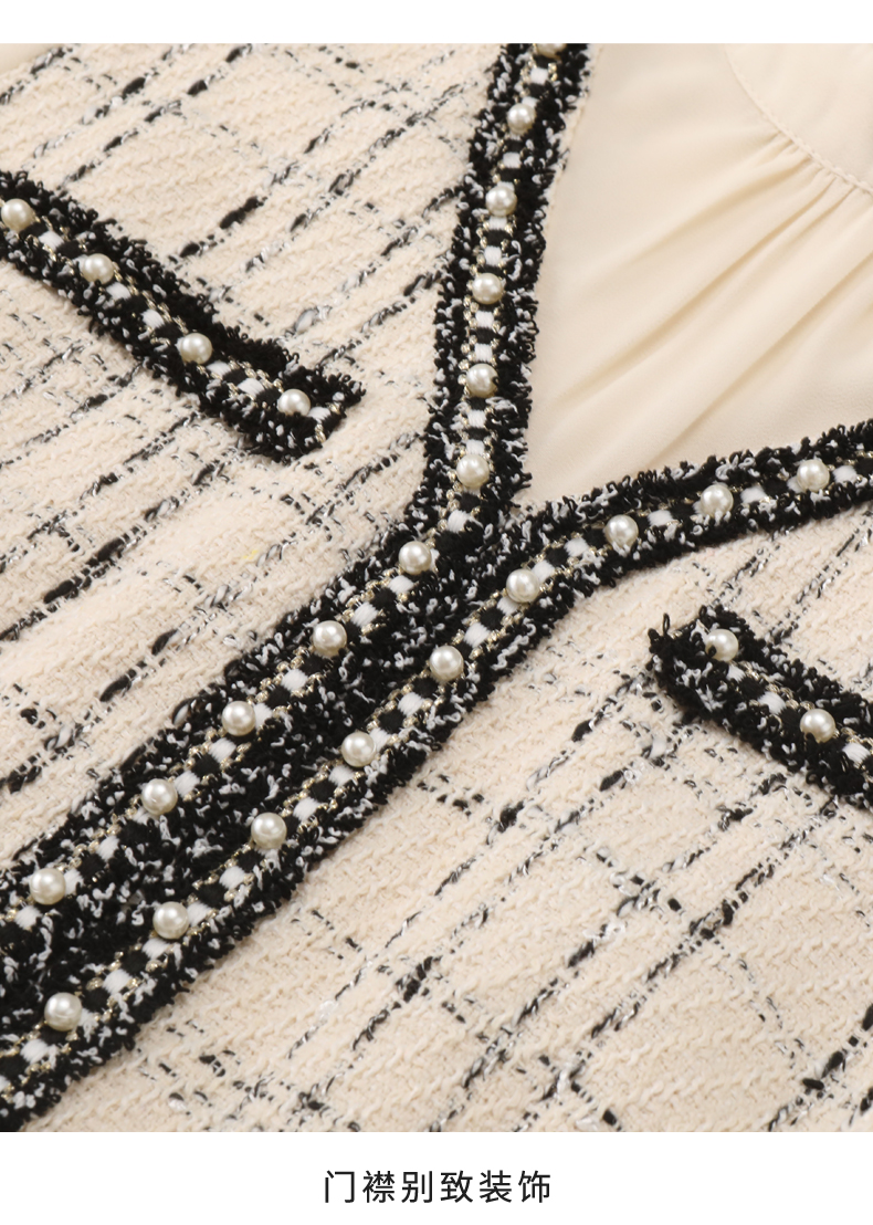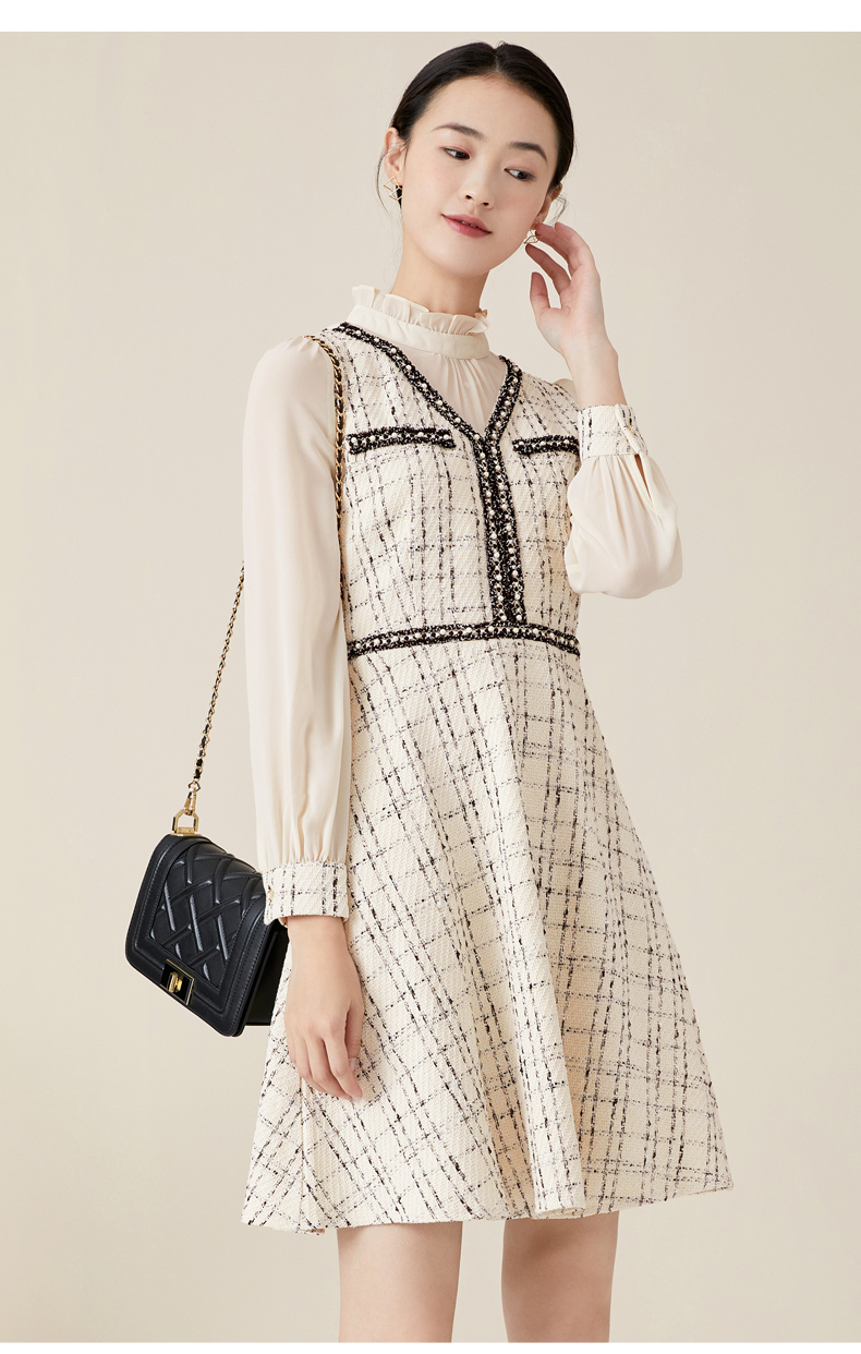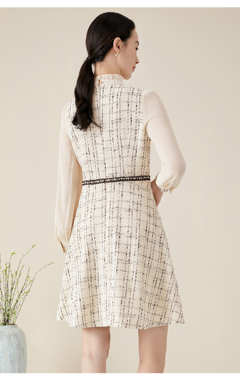 玳莎小香风气质长袖连衣裙秋冬新款A字裙小立领拼接中长款裙子 BD35303