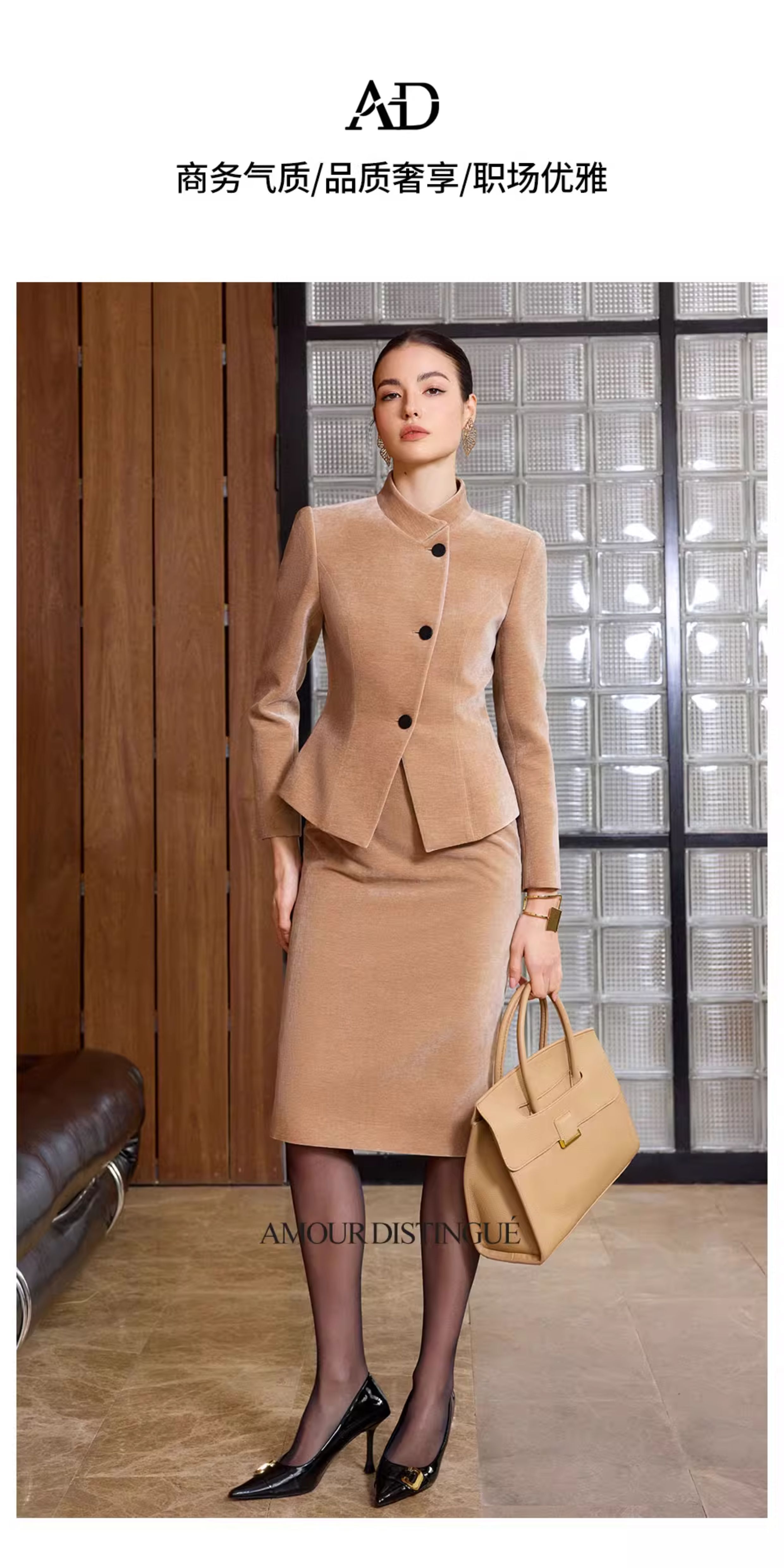 AD小香风名媛套装女2025新款气质时尚卡其色雪尼尔时尚两件套通勤