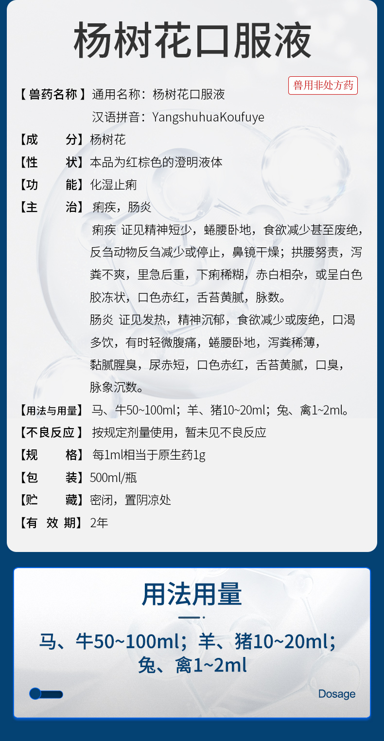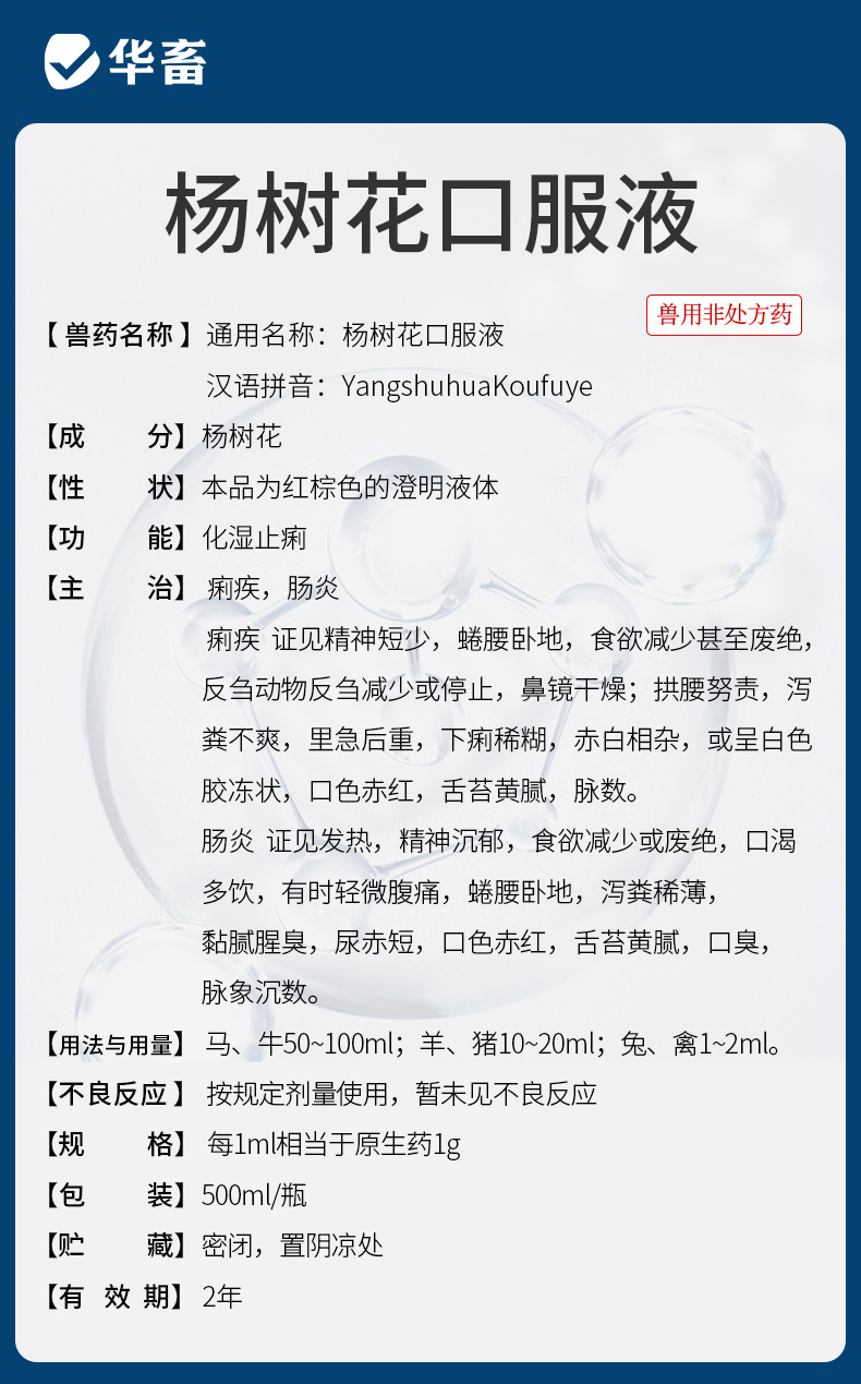 华畜杨树花口服液500ml 肠炎痢疾 顽固腹泻 禽畜通用拉稀痢疾药