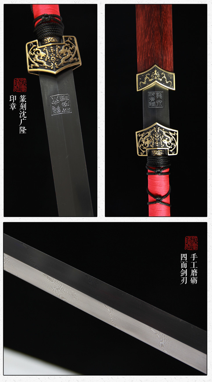 【特价】汉剑 四面汉剑 长汉剑 花纹钢汉剑 龙泉沈广隆宝剑 未开刃