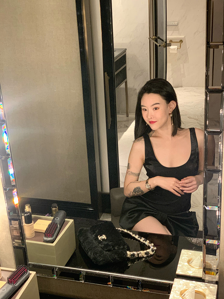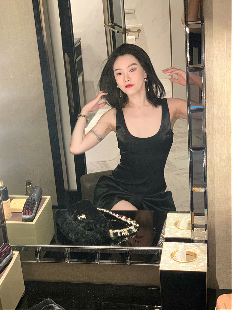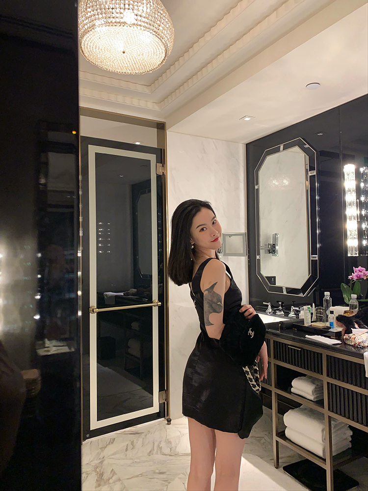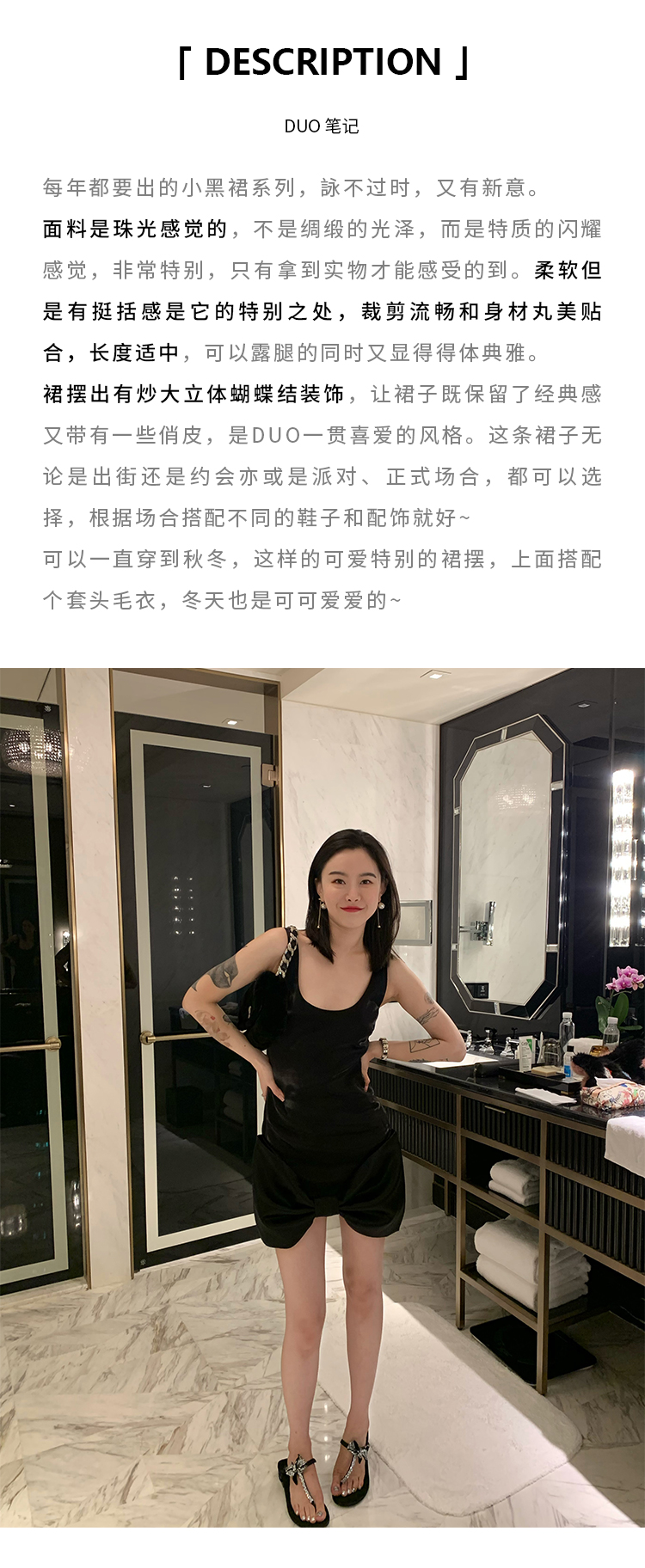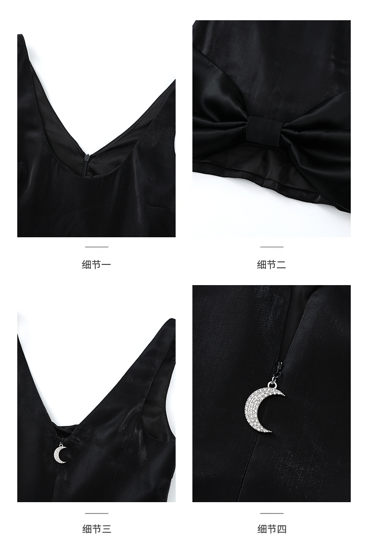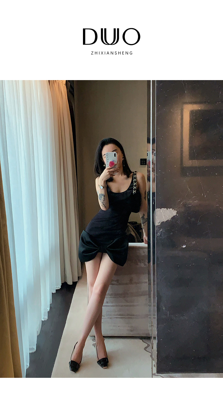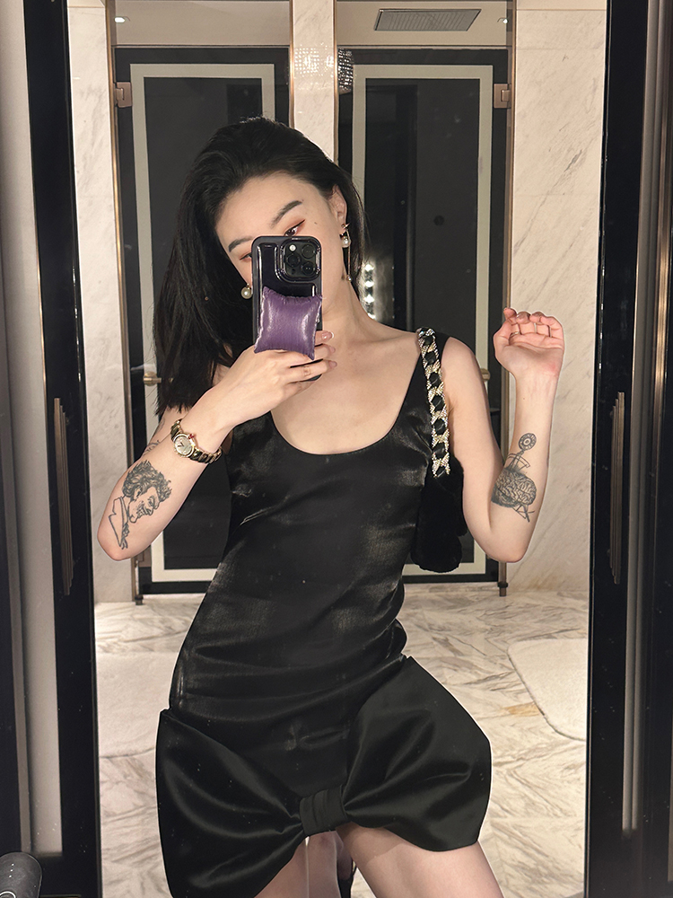 DUO智仙生 黑标珠光宴舞进口小黑裙系列蝴蝶结裙摆连衣裙