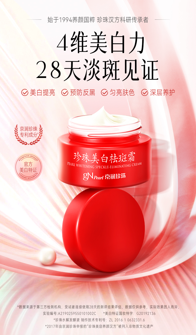 【超模君严选 拍1发4】京润珍珠·美白祛斑霜(到手3瓶面霜+1支眼霜),传承千年美颜方,一罐=美白+淡斑