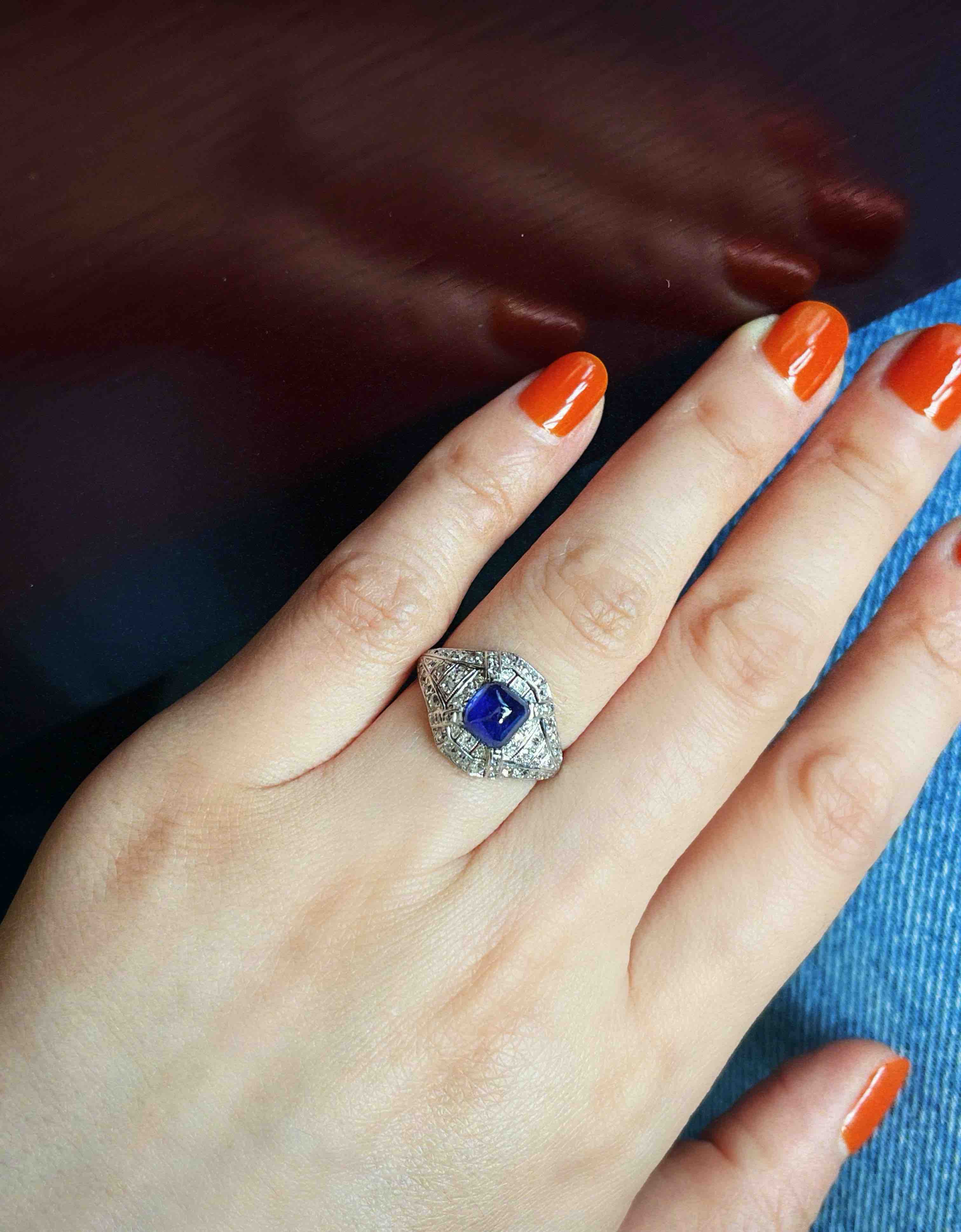 ANTIQUE系列 约1920s铂金镶嵌钻石和蓝宝石 戒指