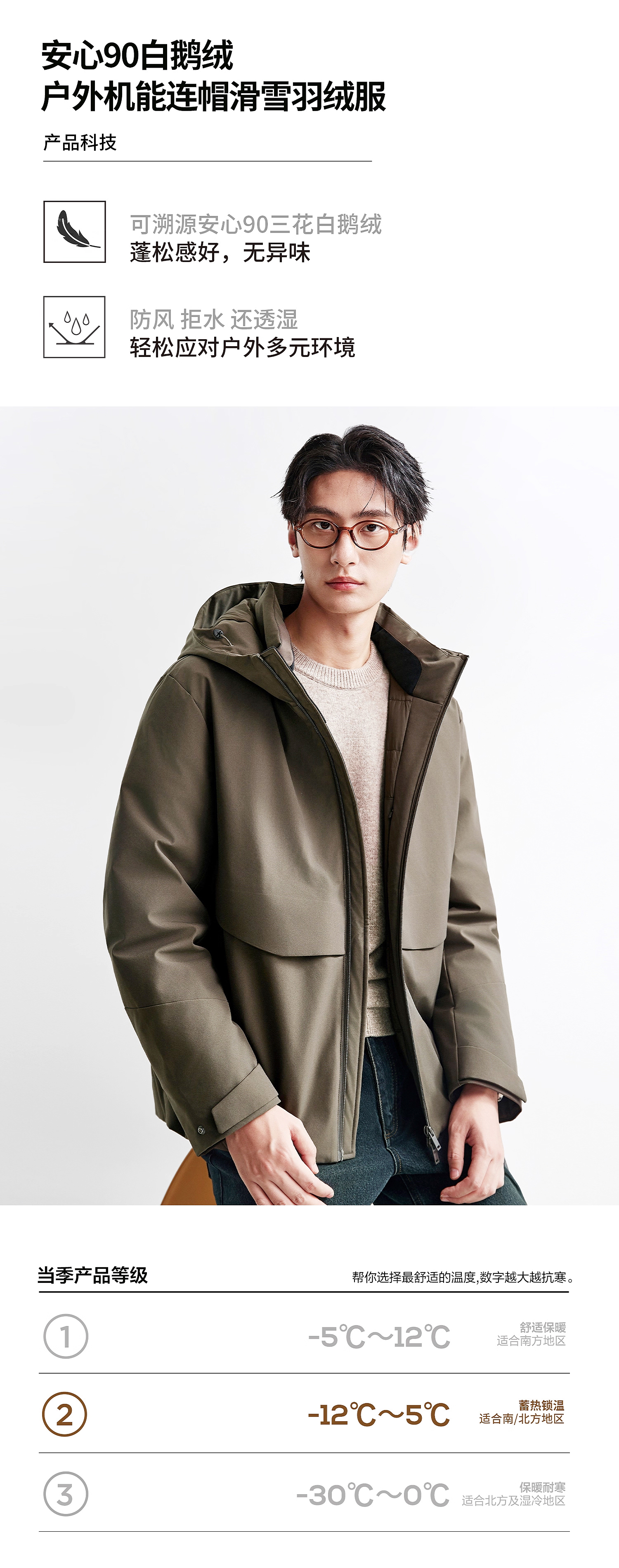 棉仓367815013-【90白鹅绒】冬季户外机能连帽滑雪服防风保暖连帽羽绒服男