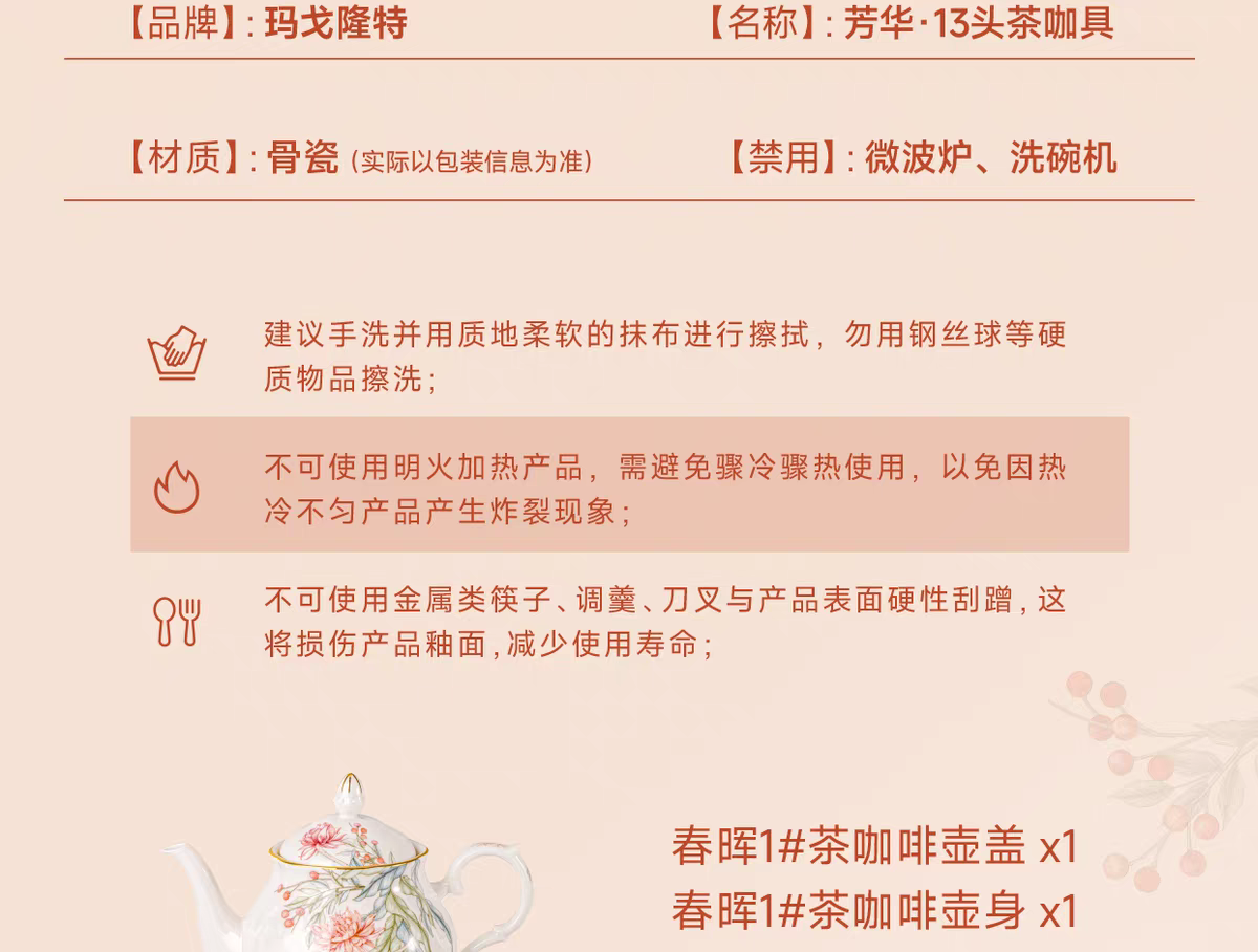 【春上新】10楼玛戈隆特 13头茶咖具 芳华 吊牌价2999元 活动价2099元