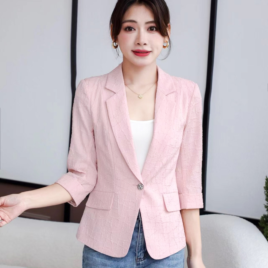 会穿“西装”的女人,气质都不会差!精选了丰富有特色的黑色和白色面料, 让你在众多西装中独 树一帜。经典版型设计,七分袖设计,让你在夏季搭配时更加舒适自在。