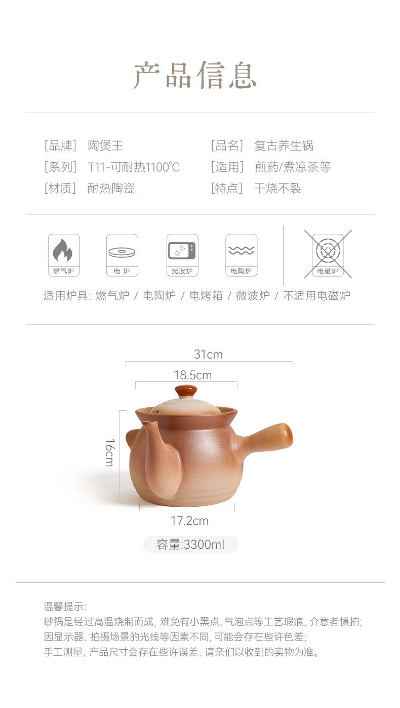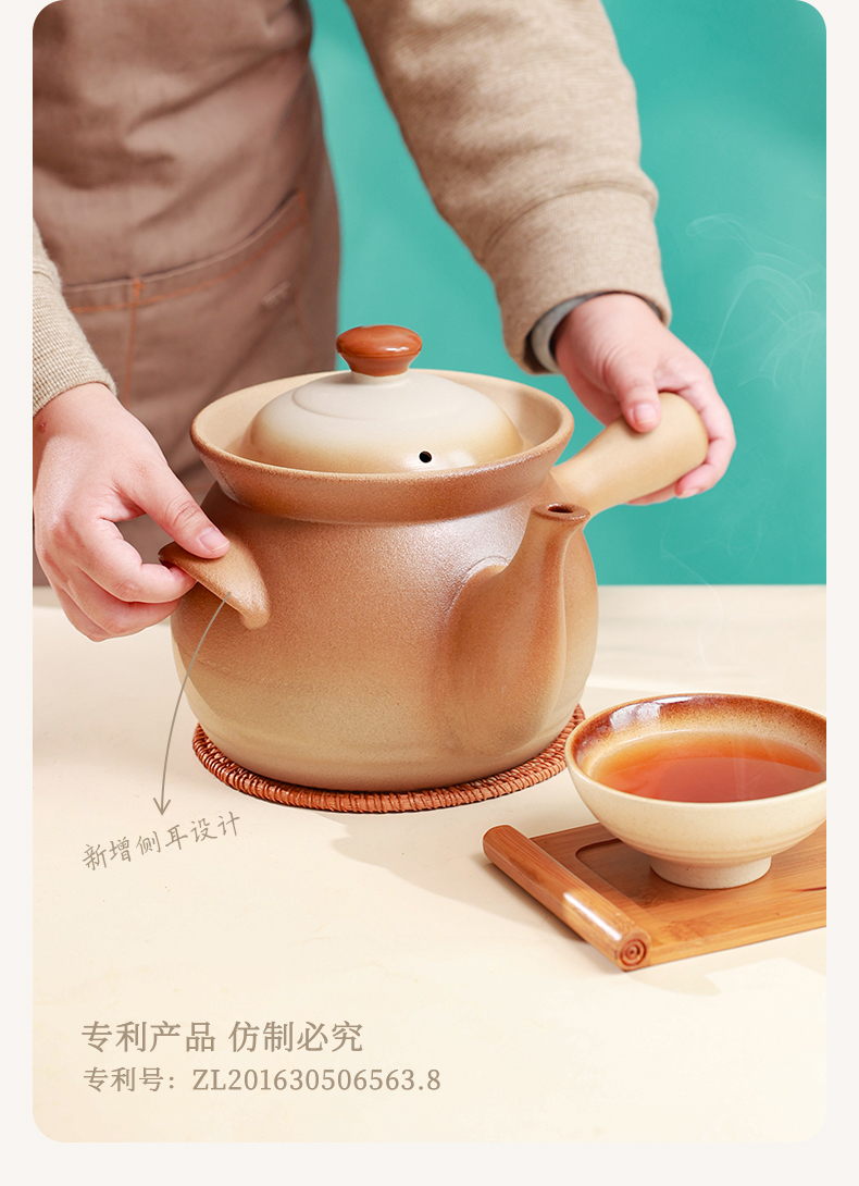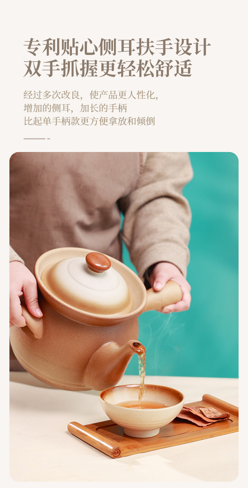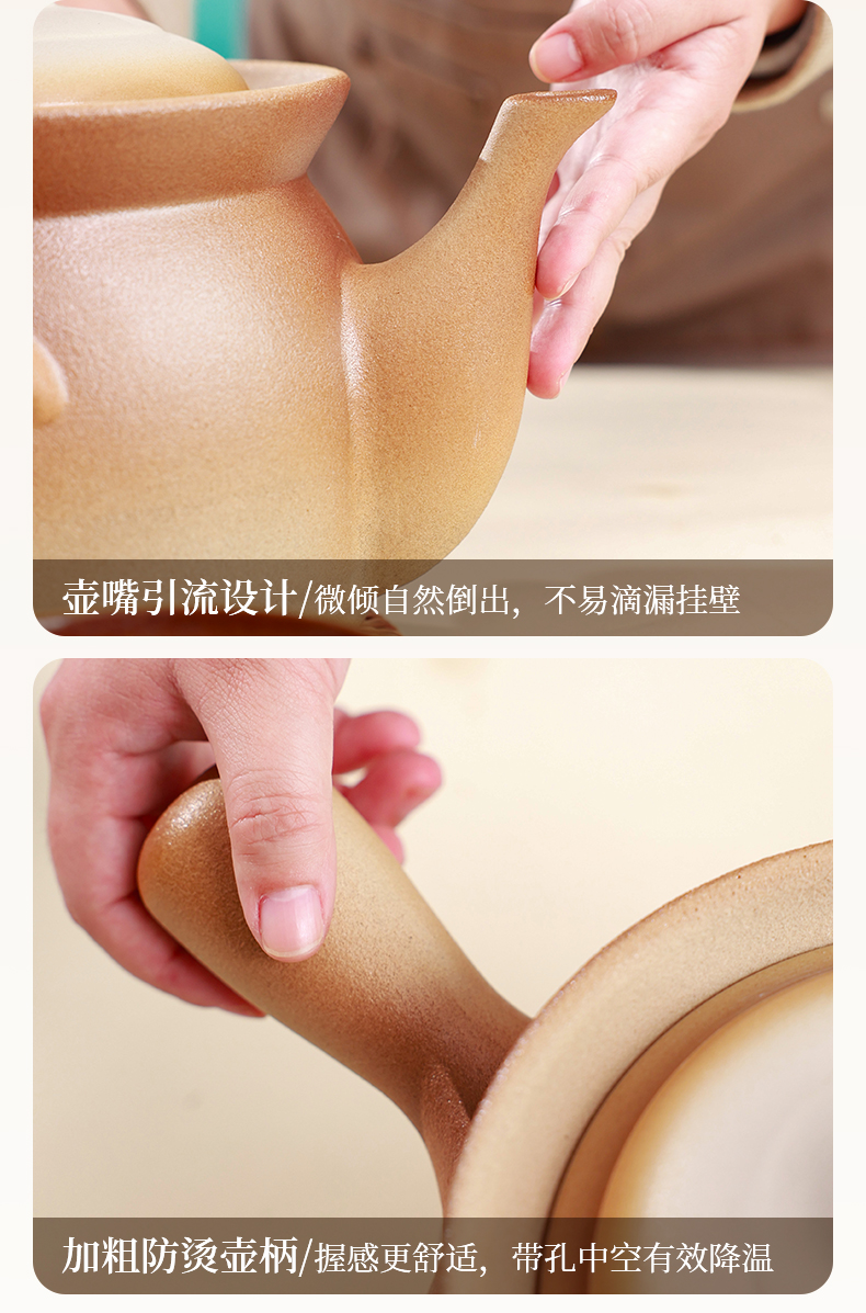 【复古侧耳养生锅】陶煲王砂锅熬中药罐子老式原陶无釉煎药专用锅养生壶陶瓷家用明火