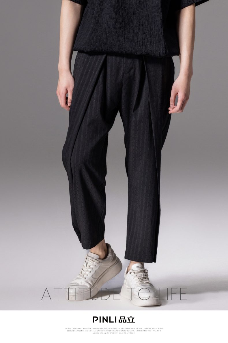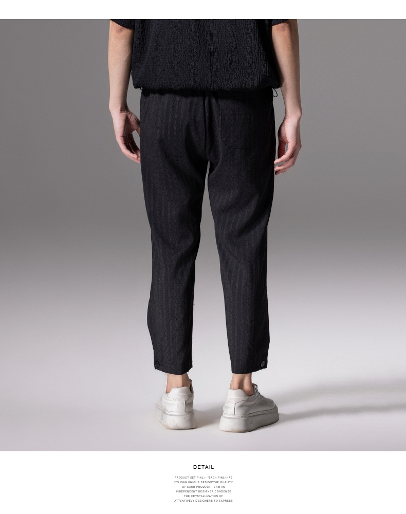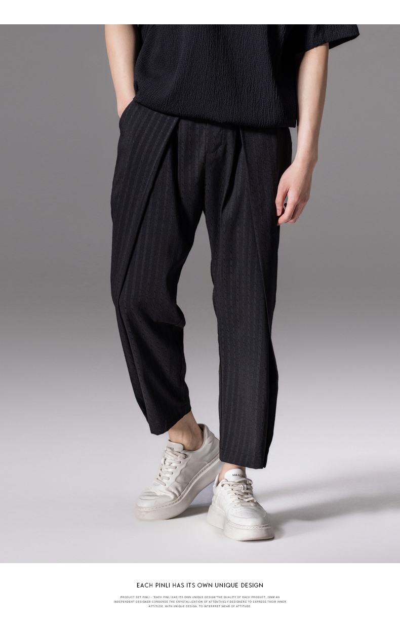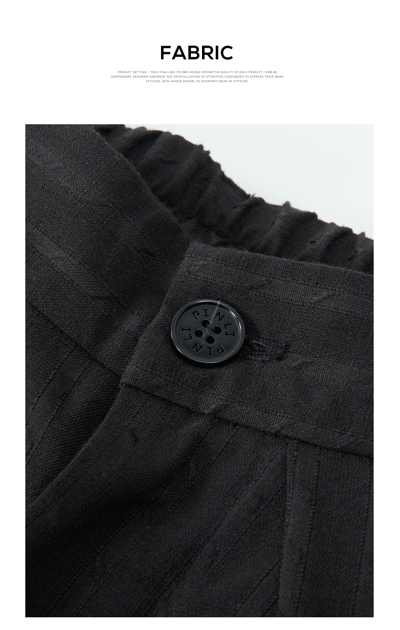 PINLI品立夏季新款暗纹提花九分裤男潮牌百搭时尚休闲直筒裤B242117102