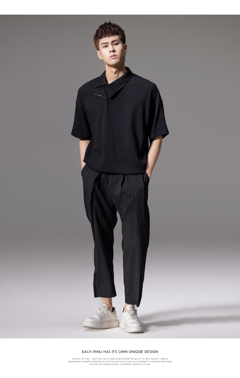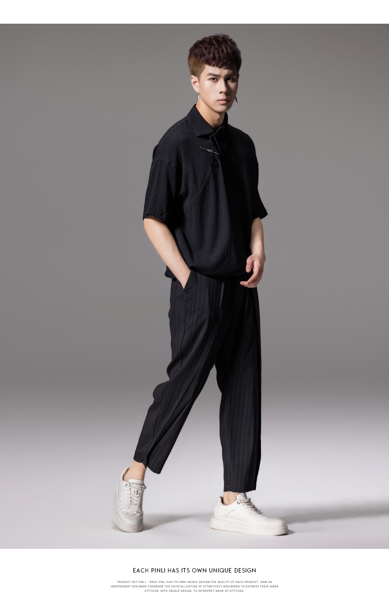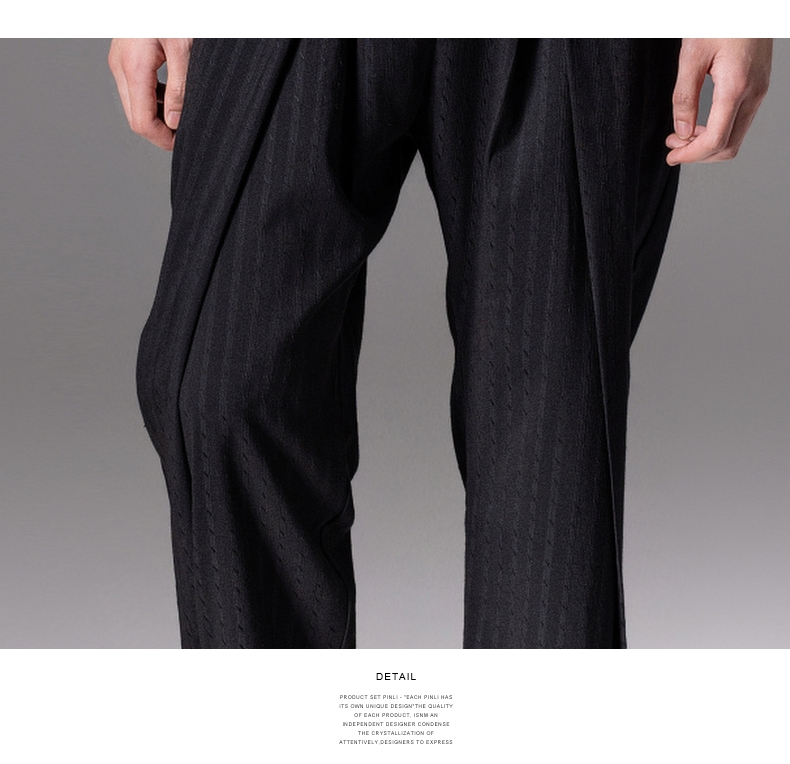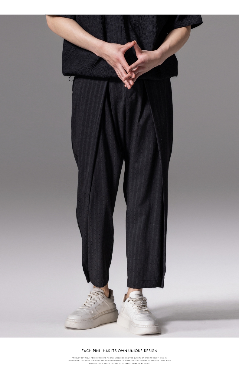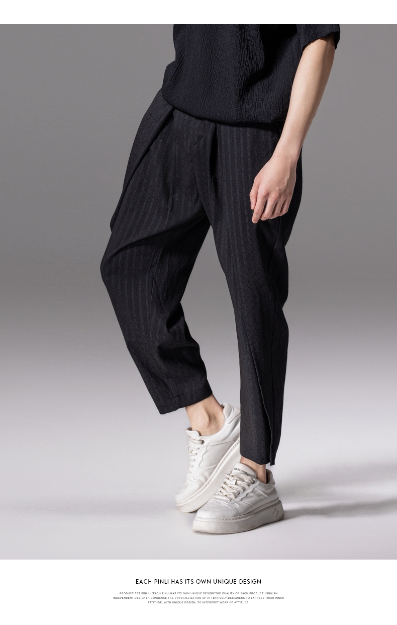 PINLI品立夏季新款暗纹提花九分裤男潮牌百搭时尚休闲直筒裤B242117102