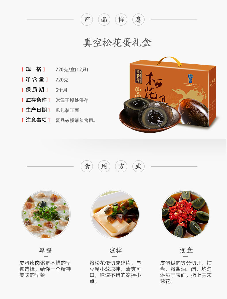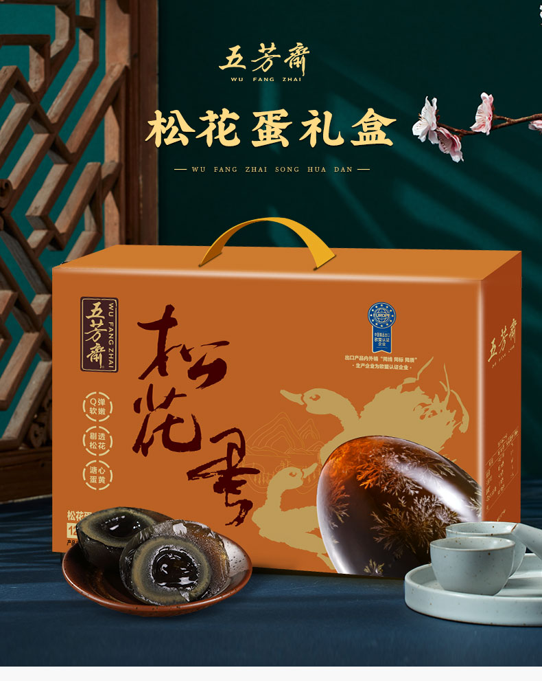 [换购] 五芳斋 真空松花蛋礼盒 溏心流心 蛋白Q弹 蛋黄半凝 壳即食 凉拌下饭神器 60g*12