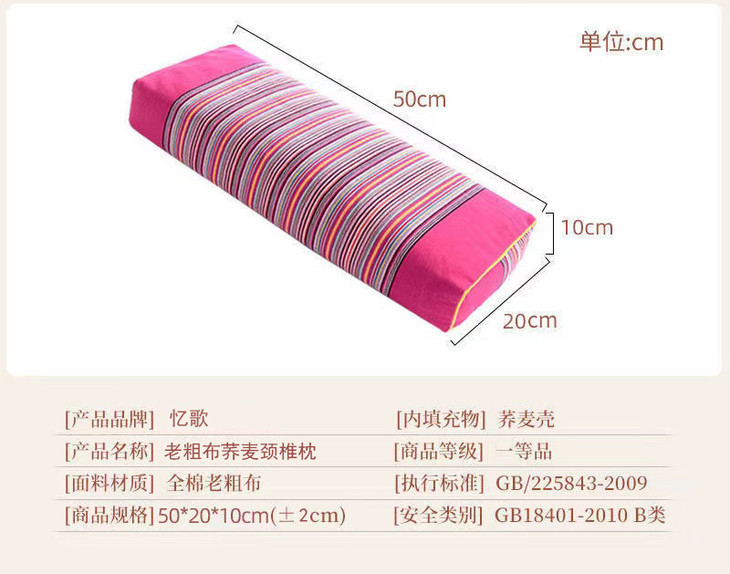 一点小提示:刚收到时,可以把内芯拿出来,粗布套子洗洗晒干后,套上再睡,我觉得在制作过程中是有点灰尘的。还有荞麦壳枕芯,建议是每半年左右晒晒,可以杀灭细菌,同时祛除异味、保持枕芯清洁,需要注意的是,晒荞麦枕时要避免阳光直射,最好是选择半阴凉通风的地方,避免受损或变色。