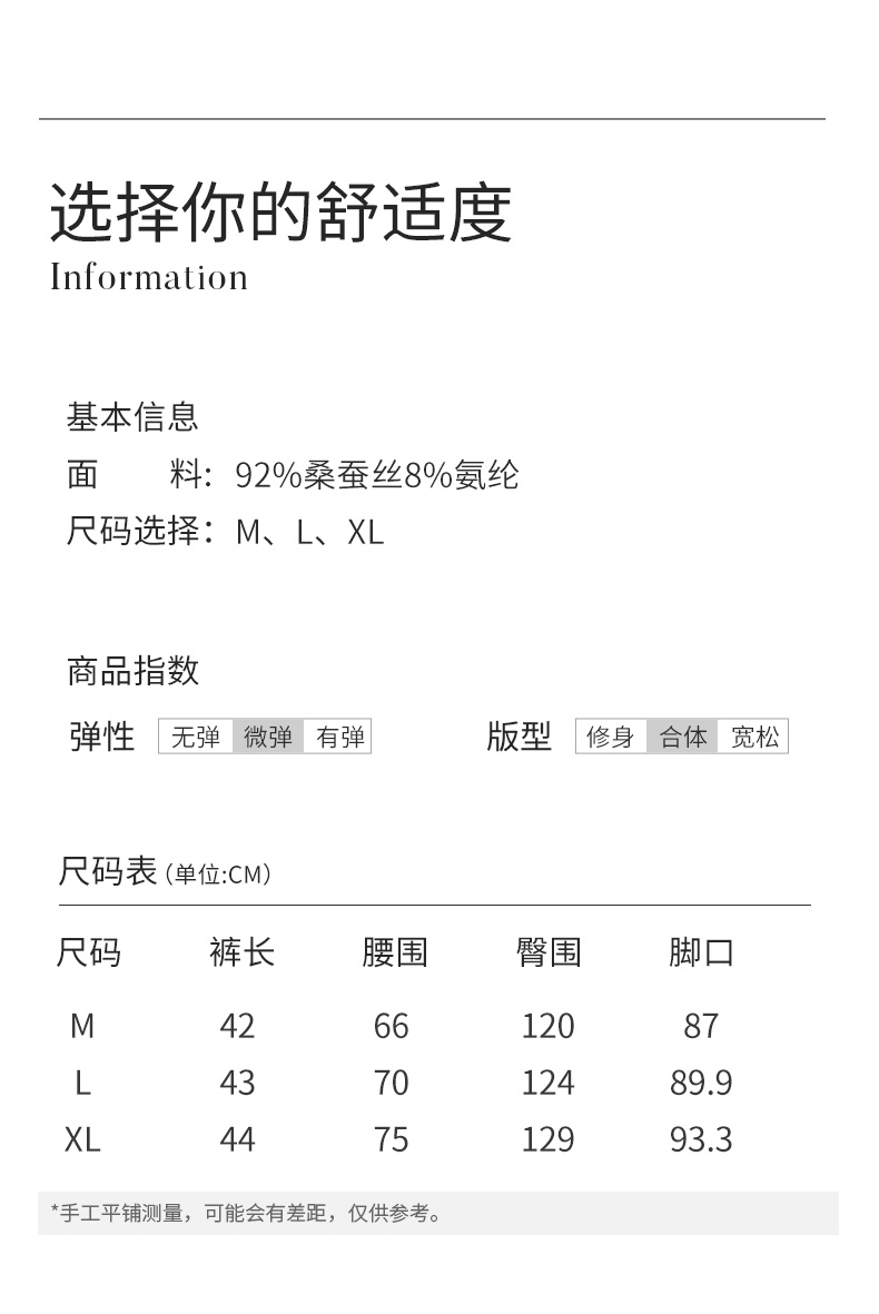 重磅桑蚕丝可外穿女遮胯显瘦廓形裙裤家居睡裤家居服金三塔 YSFFA902