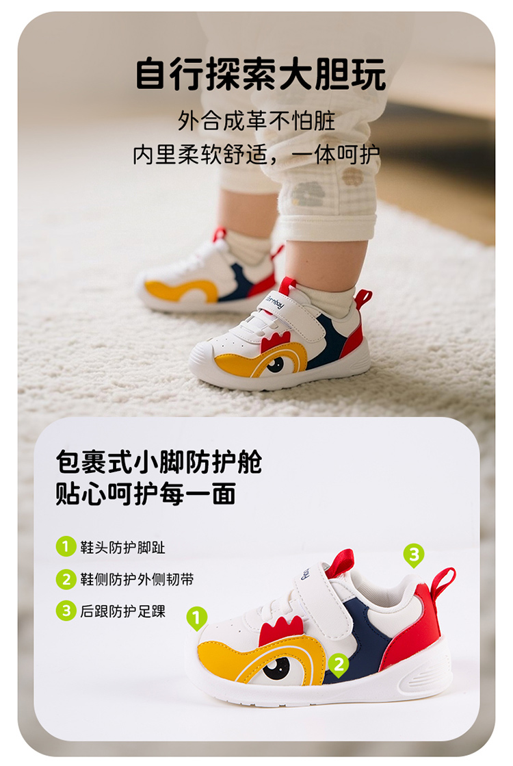 贝贝怡25春秋新款儿童轻便软底学步鞋舒适圆头防踢休闲鞋魔术贴运动鞋ZB3EX006