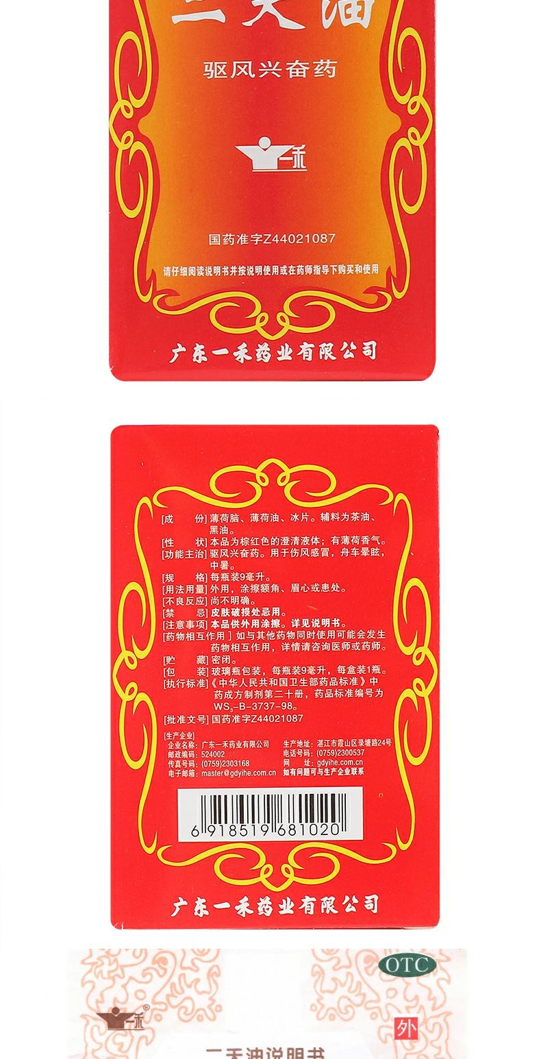 一禾二天油9ml 驱风兴奋伤风 舟车晕眩晕车中暑肚痛