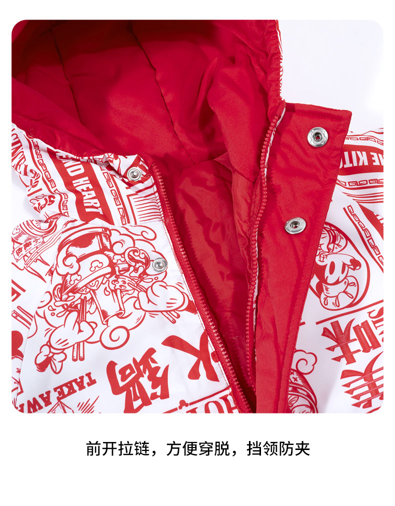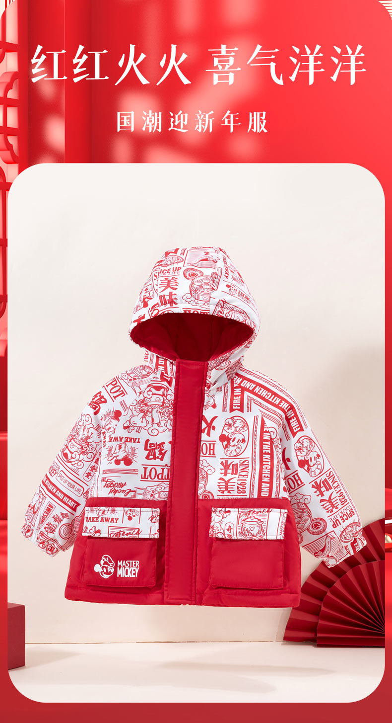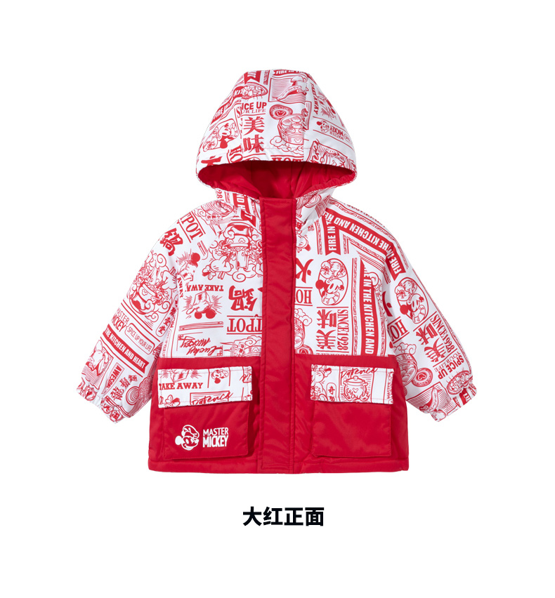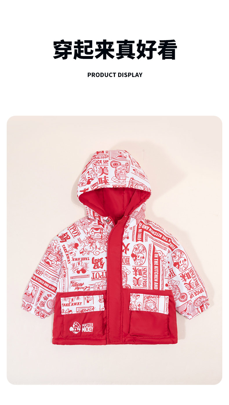 【商场同款】迪士尼冬季新款男童夹棉外套国潮喜庆满印棉服中小童新春拜年服231DS0894